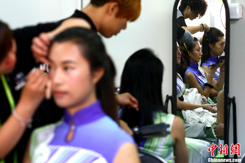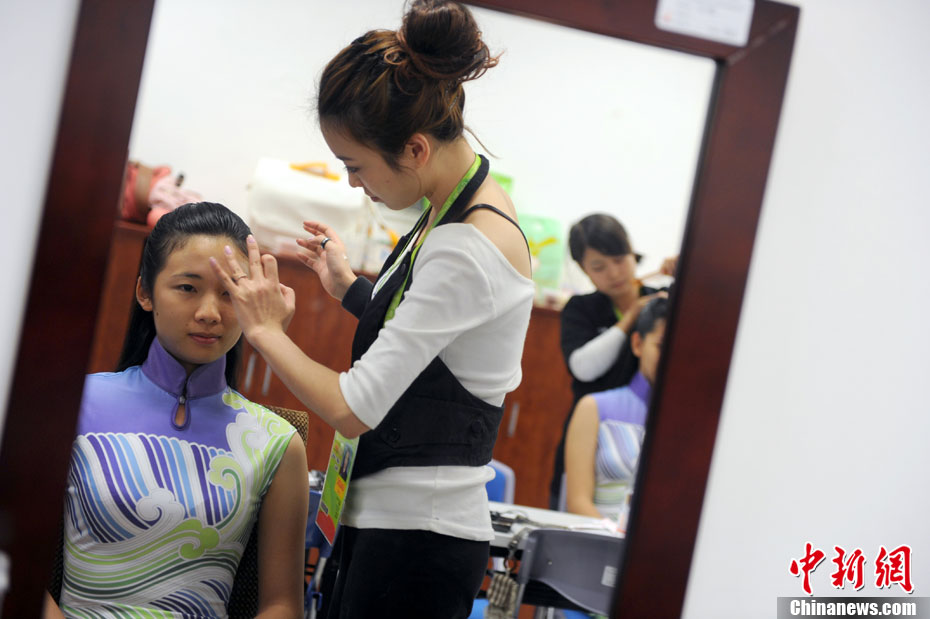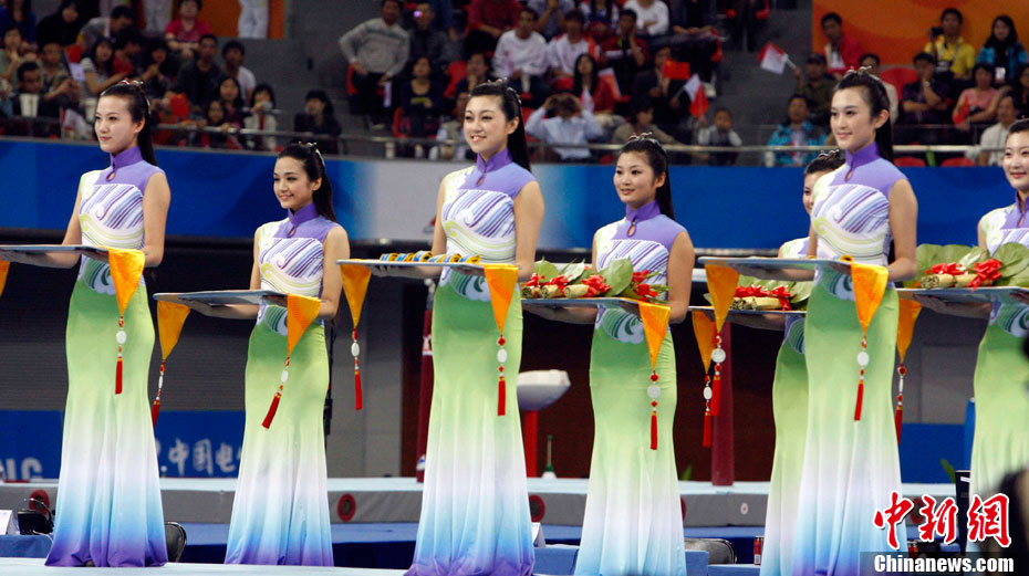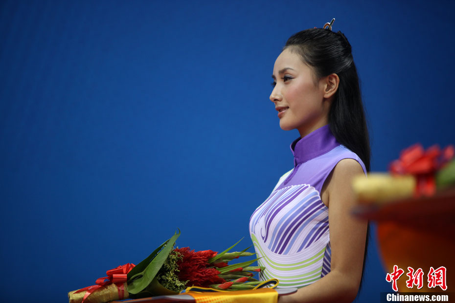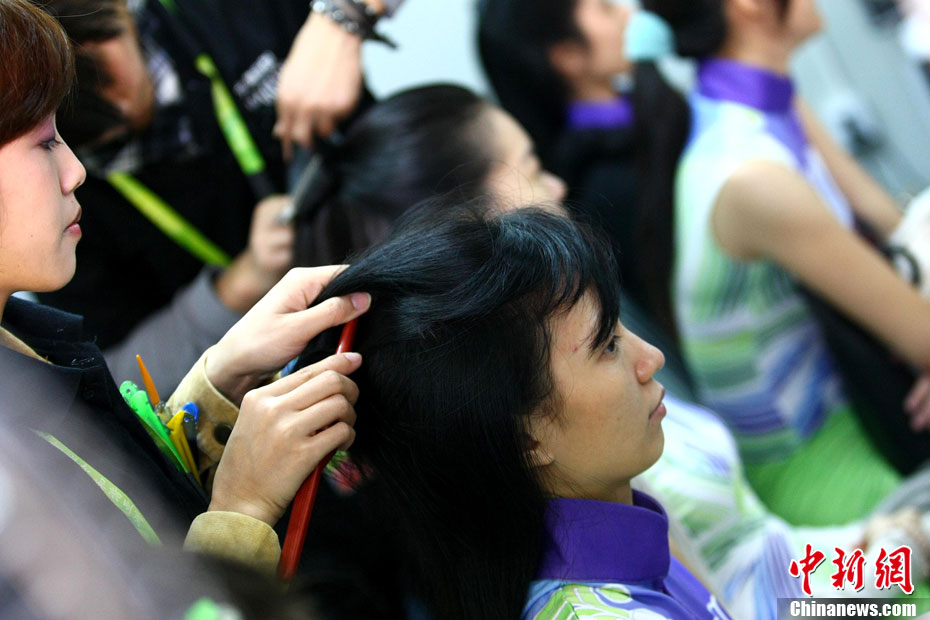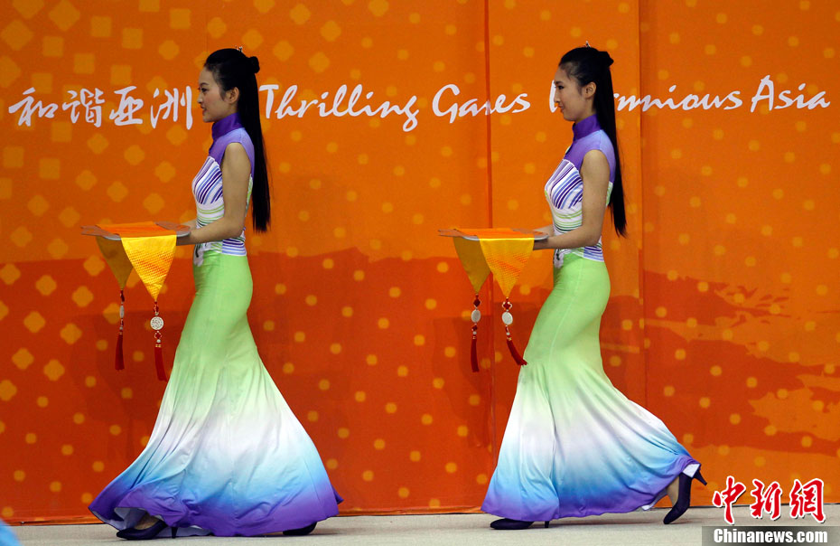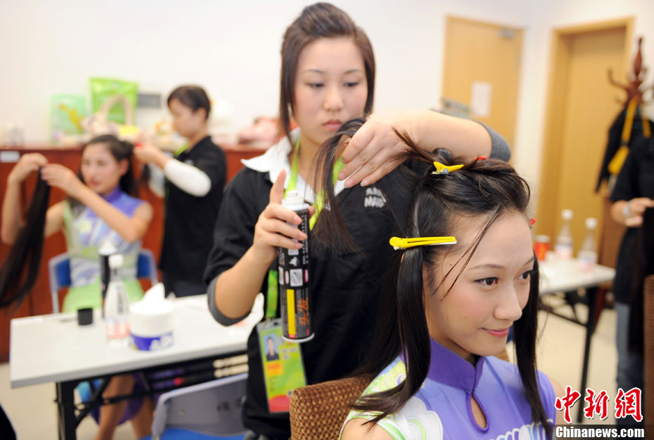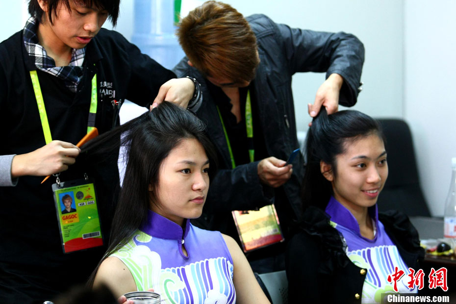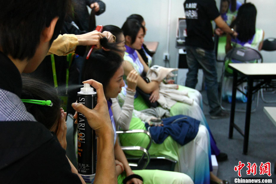 廣州亞運會比賽開始后,對于這些美麗的姑娘們“戰斗”才剛剛打響,她們每天早上6點半就起床,趕到賽場,開始4個小時的準備工作——化妝、做頭發、整體造型,這一切都為頒獎典禮的那短短一刻。