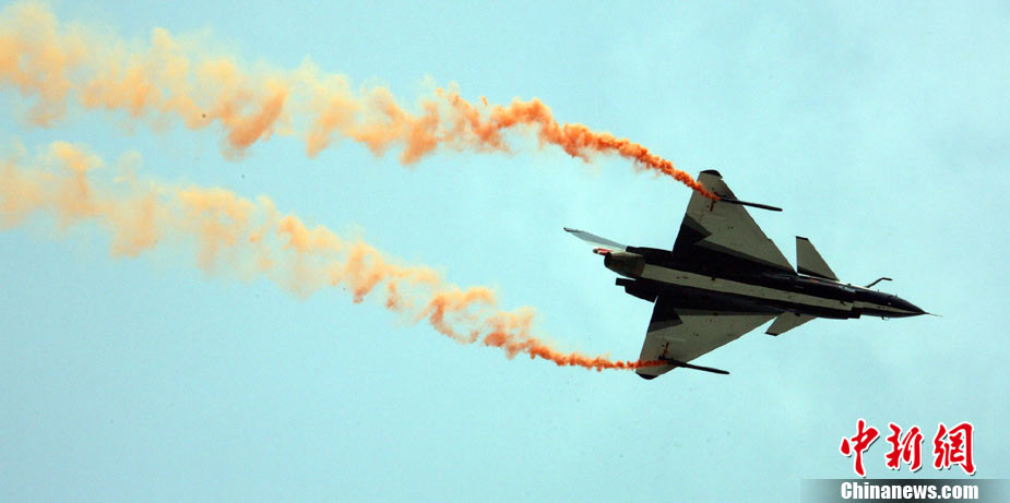 11月16日,第八屆珠海航展拉開帷幕,解放軍八一飛行表演隊4架殲十戰機編隊進行飛行表演。中新社記者 孫自法攝