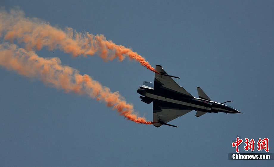 殲十戰機編隊在珠海航展上進行飛行表演