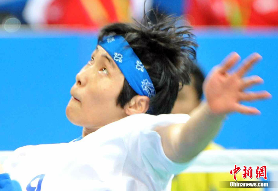 亞運藤球賽場上,不少選手喜歡戴頭巾,色彩斑斕的頭巾把運動場變成了一個“T臺秀場”。中新社記者 柯小軍 攝