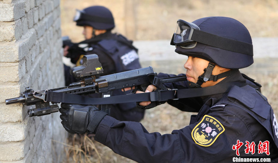 11月16日,河北石家莊特警、治安警、刑警、武警、交警、消防等多警種聯動,舉行代號為“紅箭突擊——2010”大型反恐處突應急拉動演練。據指揮部有關負責人介紹,此次演練從實戰出發,主要分為參演隊伍分列式和處突實兵演練,以檢驗重大案(事)件應急處突力量的協同配合和處置能力。圖為特警“解救”客車上的游人。中新社發 劉志敏 攝