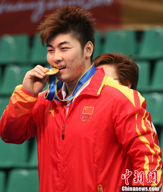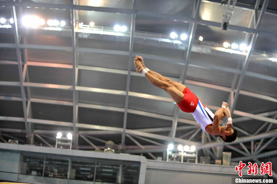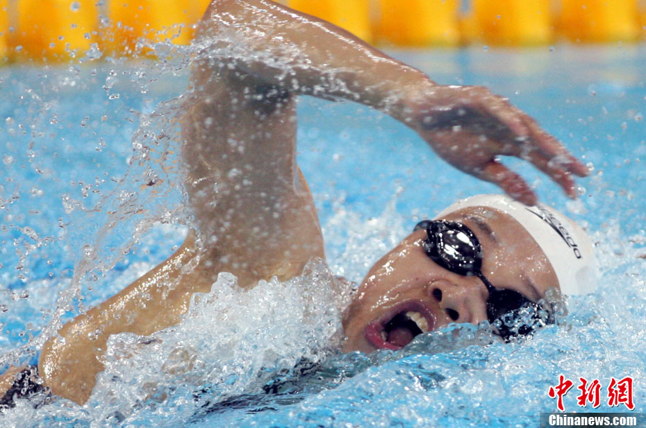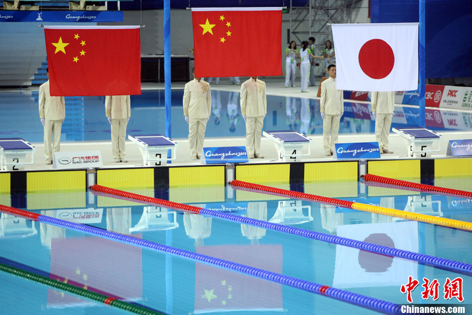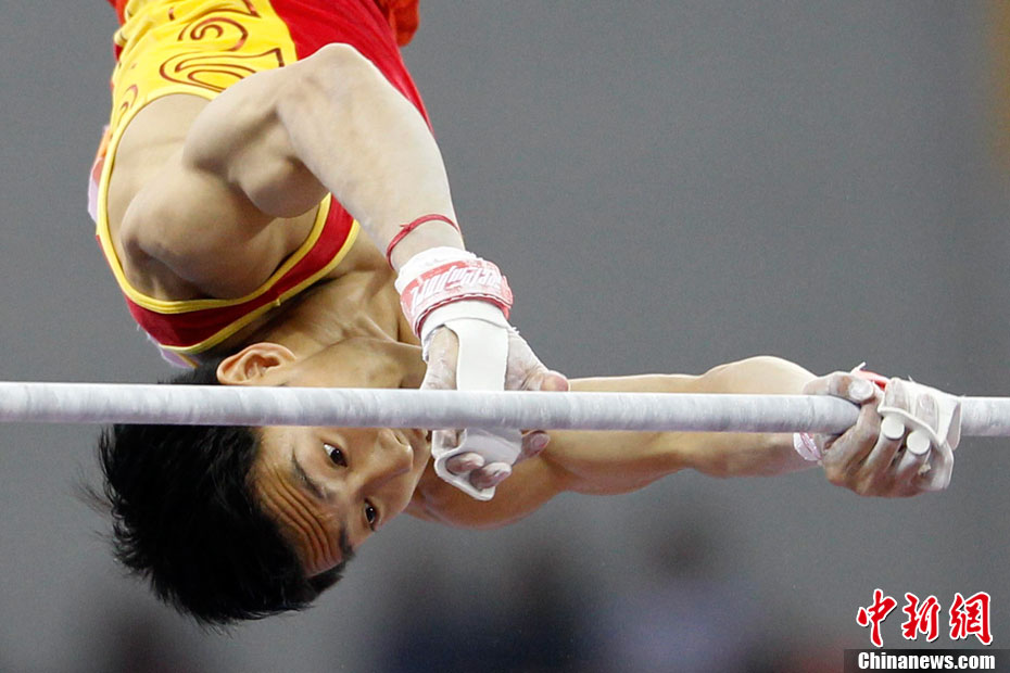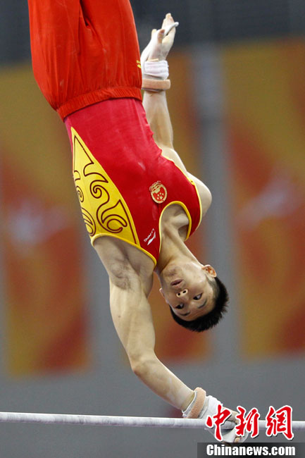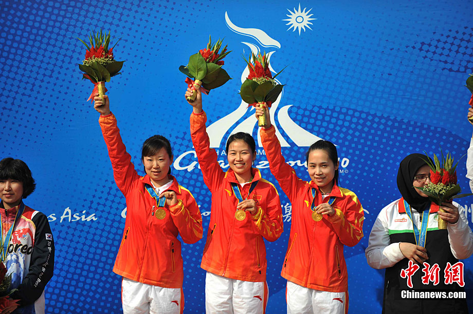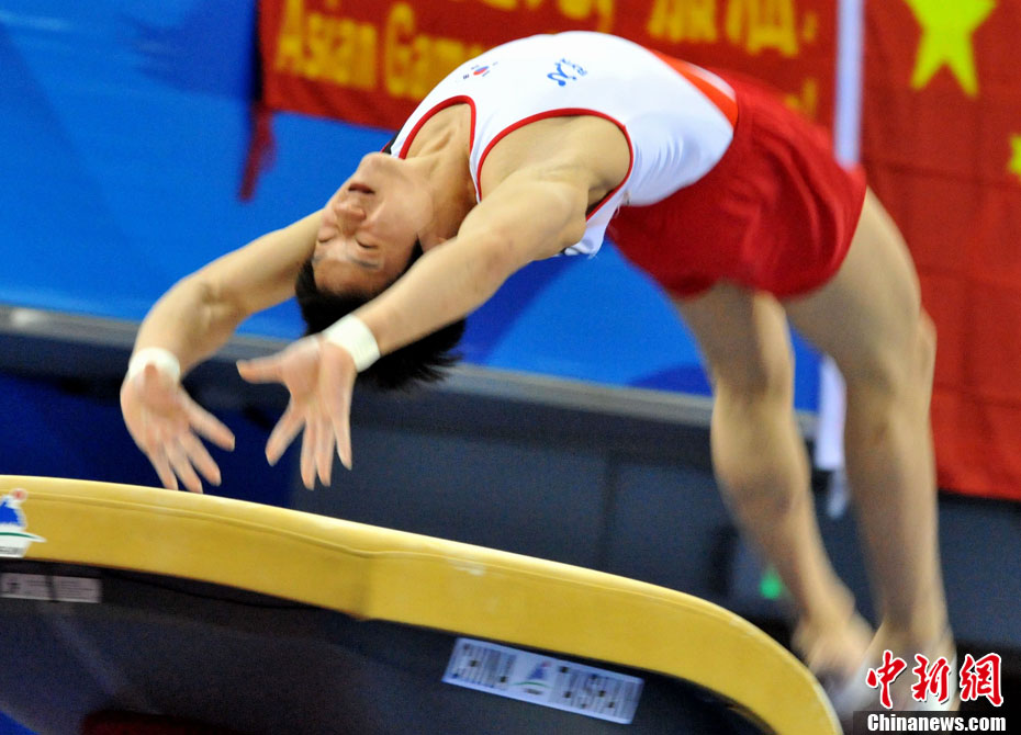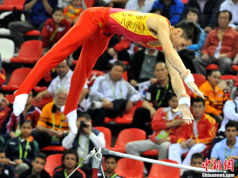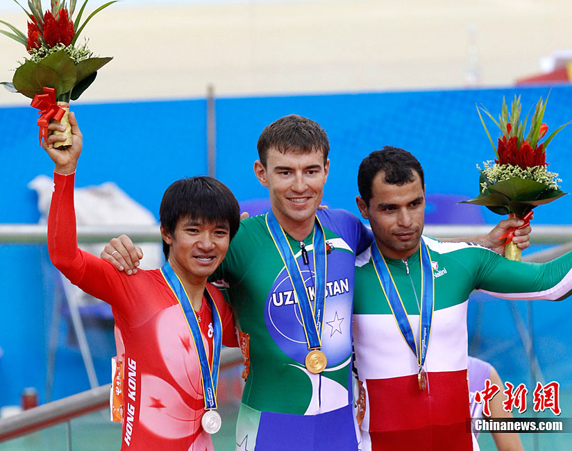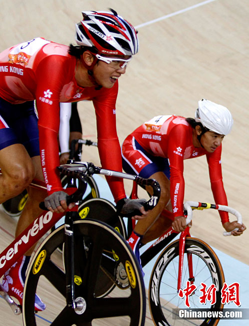 第十六屆廣州亞運會11月17日進行了場地自行車男子30公里記分賽,中國香港選手黃金寶奪得亞軍。圖為黃金寶與隊友在比賽中。中新社記者 趙振清 攝