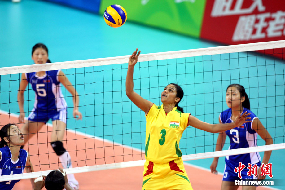 11月18日,廣州亞運會女排比賽全面展開,中國隊首戰迎來塔吉克斯坦隊。比賽中,中國女排隊員憑借網上的絕對優勢以3比0戰勝塔吉克斯坦隊。中新社記者 湯彥俊 攝