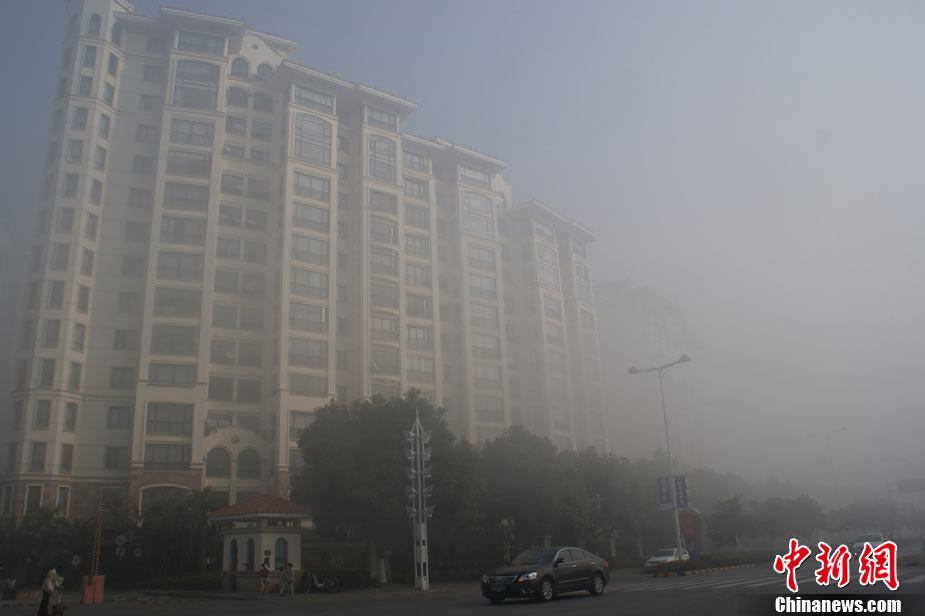 11月19日上午,北京被霧霾天籠罩,能見度較低,西二環路上的汽車緩慢前行。中新社記者 侯宇 攝
