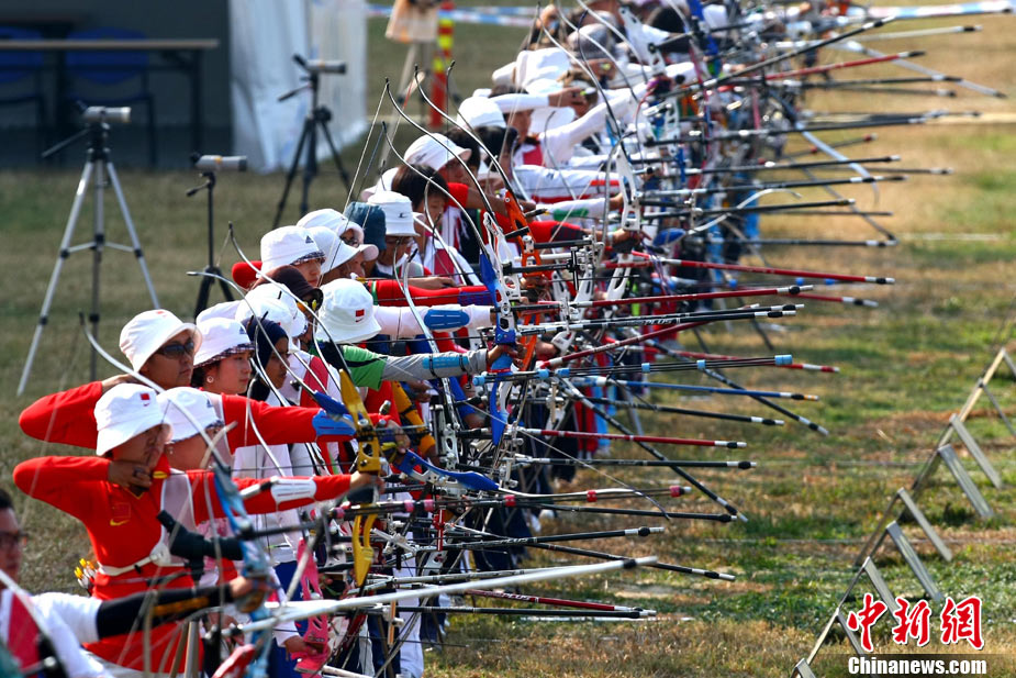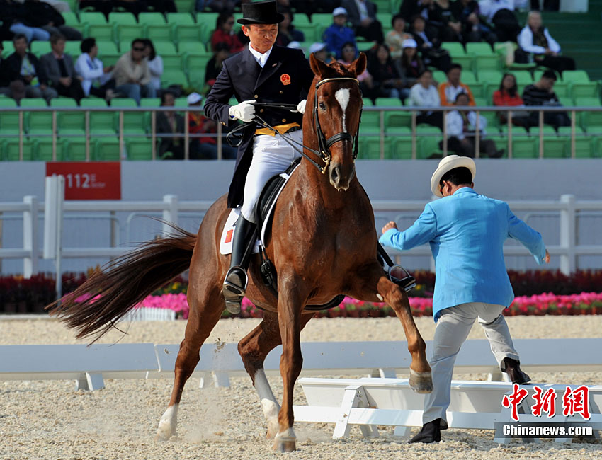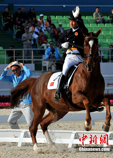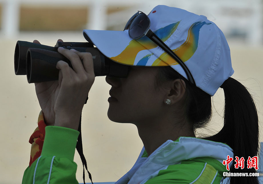 中國志愿者在11月的亞運會馬術賽場用望遠鏡觀察賽場是否安靜。連日不該出現的熱烈掌聲經常騷擾參賽坐騎,賽場不斷吁請中國觀眾遵守賽場文明,提高觀賽素質別幫倒忙。中新社記者 賈國榮 攝