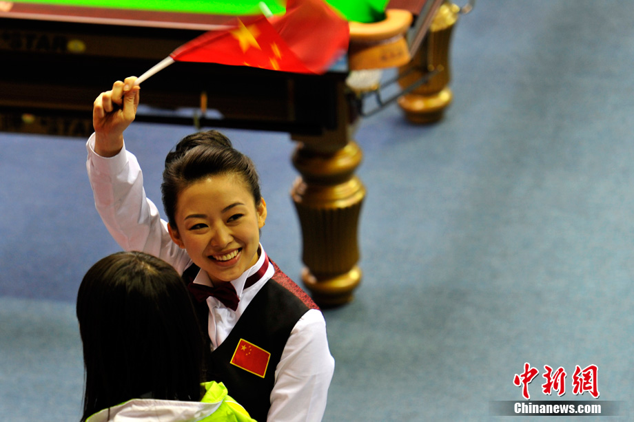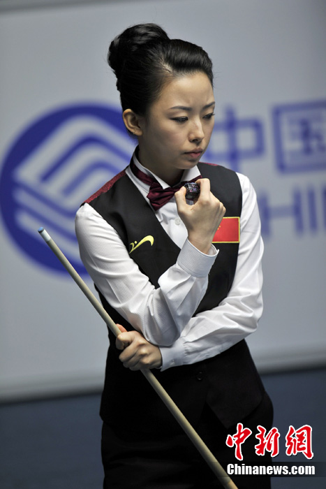11月19日下午,廣州亞運會女子美式9球單打決賽在亞運城體育館上演,經過2個多小時的激烈角逐,中國選手潘曉婷以7:5力克中華臺北選手周婕妤,最終奪冠。中新網記者 金碩 攝