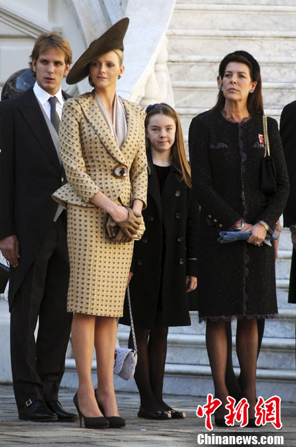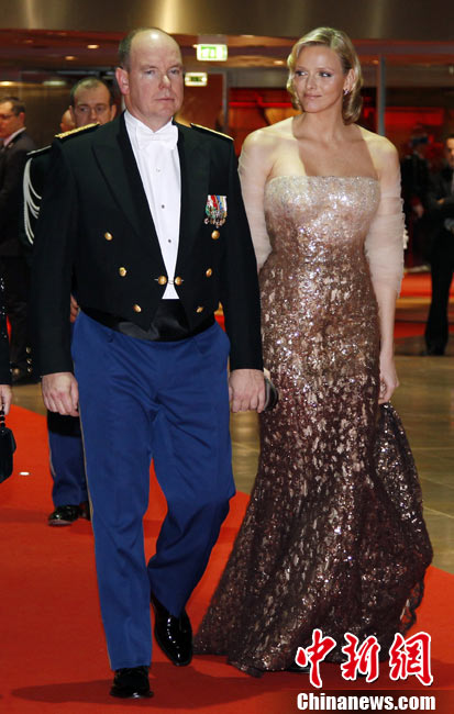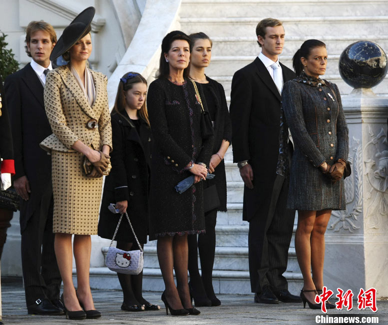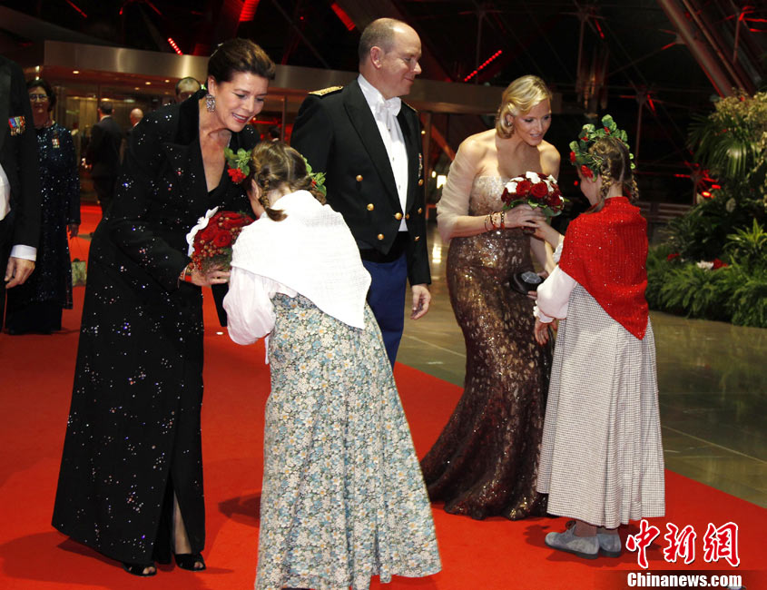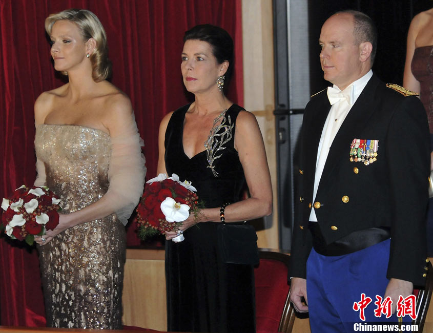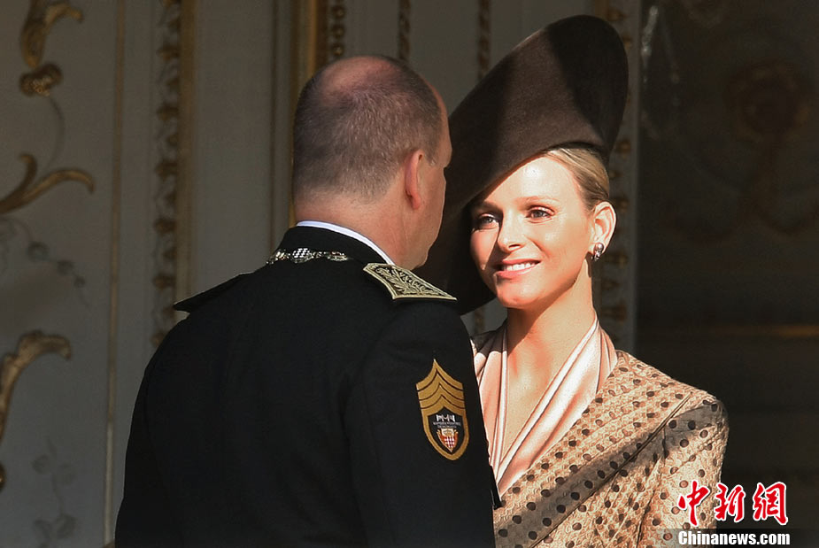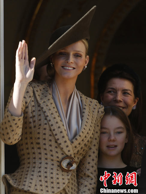 19日,摩納哥國家元首阿爾貝二世親王的準王妃查倫·維特施托克(圖左)驚艷亮相摩納哥國慶慶典。她與王室成員一同出現(xiàn)在王宮觀禮臺,接受民眾和游客的歡呼與祝福,當(dāng)晚她又以一身閃亮的白色禮服再次與王室成員共同亮相。