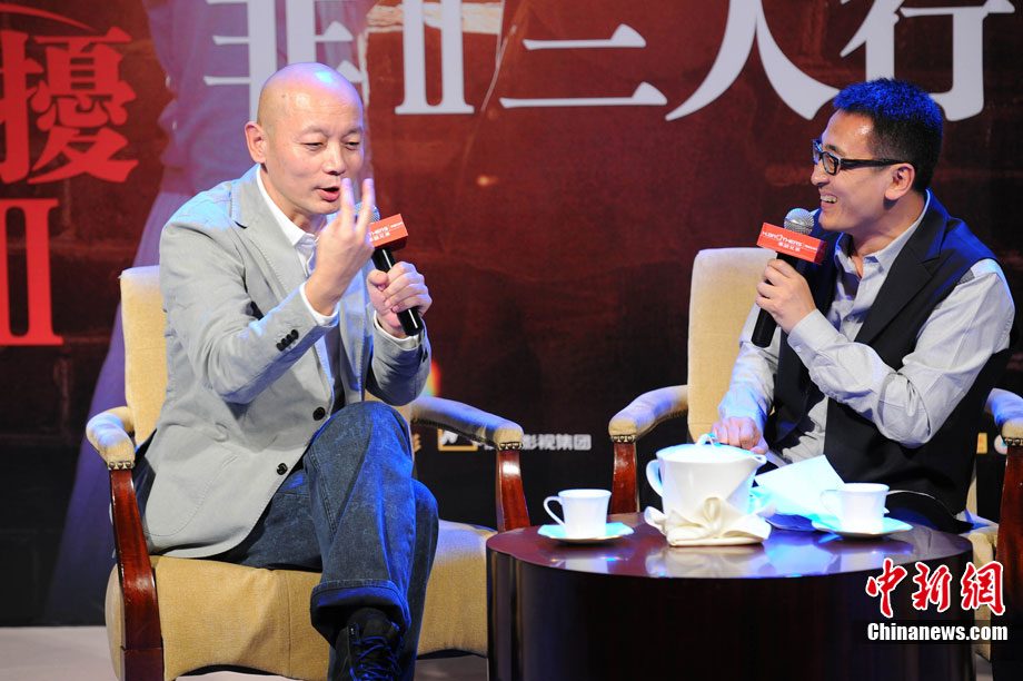 由華誼兄弟出品、馮小剛導演、王朔與馮小剛聯合編劇的《非誠勿擾2》將于12月22日賀歲上映。11月24日,《非誠勿擾2》舉行了“《非2》三人行”發布會,正式發布《非誠勿擾2》升級版幕后花絮,馮小剛、葛優、竇文濤組成三人行搭檔。在竇文濤的幽默調侃下,葛優馮小剛熱聊新戲,笑聲不斷。在當場公布的升級篇幕后花絮中,秦奮和梁笑笑的親密戲也出露端倪,葛優舒淇在美景中多次深情依偎,一場兩人在床上的鏡頭更令人期待。馮小剛承認,“是多了一些親密戲,但都是幽默的處理。”葛優也謙虛表示,自己演親密戲其實并不拿手。中新社記者 李學仕 攝
