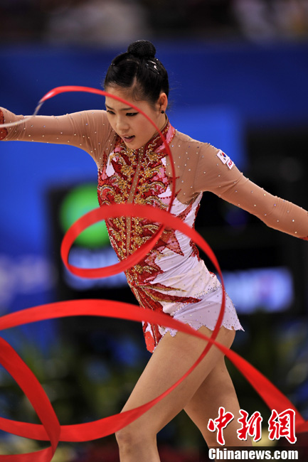 11月25日,亞運會上最“唯美”的項目藝術體操正式開賽,90后的小選手們纖細曼妙的身材、柔美而富有韻律的動作成為亞運賽場最美的風景線。中新網記者 金碩 攝