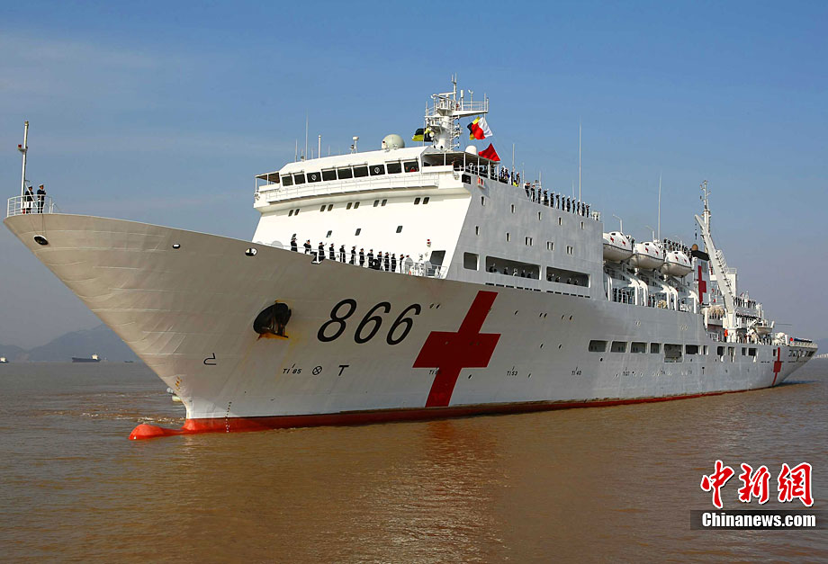 11月26日上午10時,中國海軍萬噸級醫院船“和平方舟”安全駛抵舟山軍港,這支歷時88天、航程17800海里的海上醫療隊、為海軍護航官兵和吉布提、肯尼亞、坦桑尼亞、塞舌爾和孟加拉等國民眾體檢2127人,門診診治12806人、醫療巡診1858人,輔助檢查15537人次,成功實施手術97例,贈送藥材36類790種。海軍副政委徐建中中將迎接執行任務的官兵歸來。宋吉河 攝