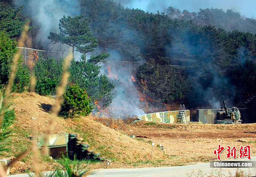 當地時間11月26日,韓防部首次公布了朝鮮向韓延坪島發射炮彈時延坪韓軍部隊K-9自行火炮陣地情況。當時,該陣地成為一片火海,炸彈在僅距陣地2米處爆炸。