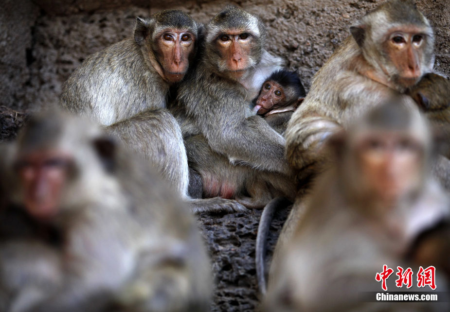 泰國舉辦猴子“宴會” 猴子餐桌大快朵頤