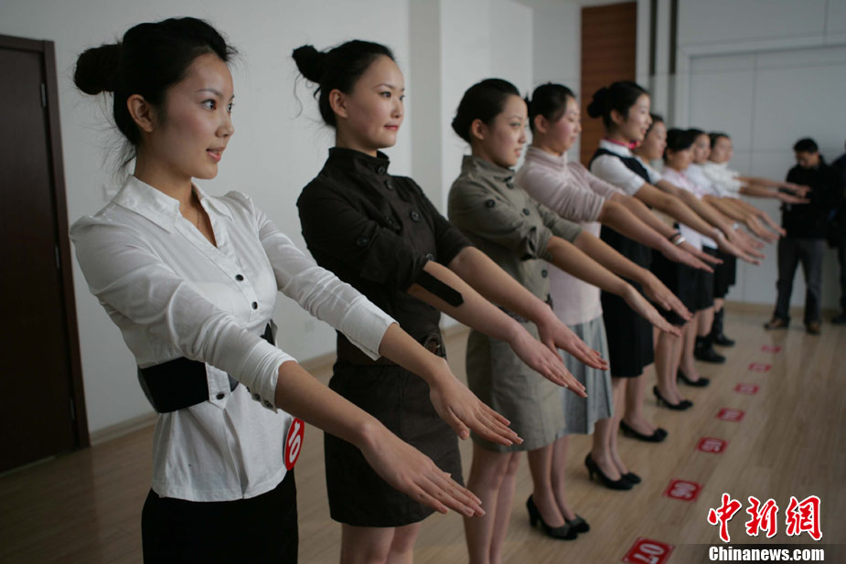 11月29日上午,海南航空公司在鄭州、太原等地招聘空乘人員,近千名俊男靚女齊聚太原招聘點,為實現展翅藍天的職業夢想接受層層選拔。 中新社發 張云 攝