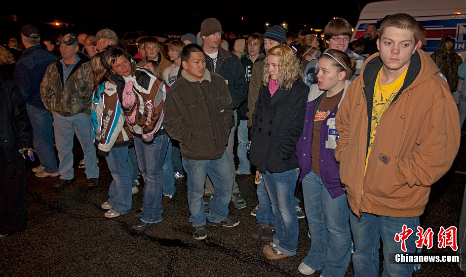 當地時間11月29日,美國威斯康星州馬里內特縣一所學生發生人質劫持事件。劫持者在與警方對峙5個多小時后,釋放了所有人質,人質劫持事件“平安”收場。圖為11月29日,學生們在美國威斯康星州馬里內特縣一所發生人質劫持事件的高中等候。