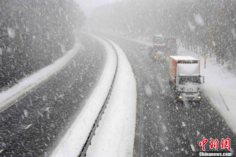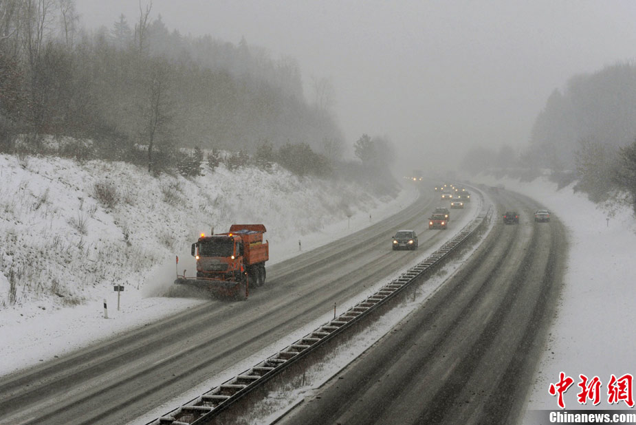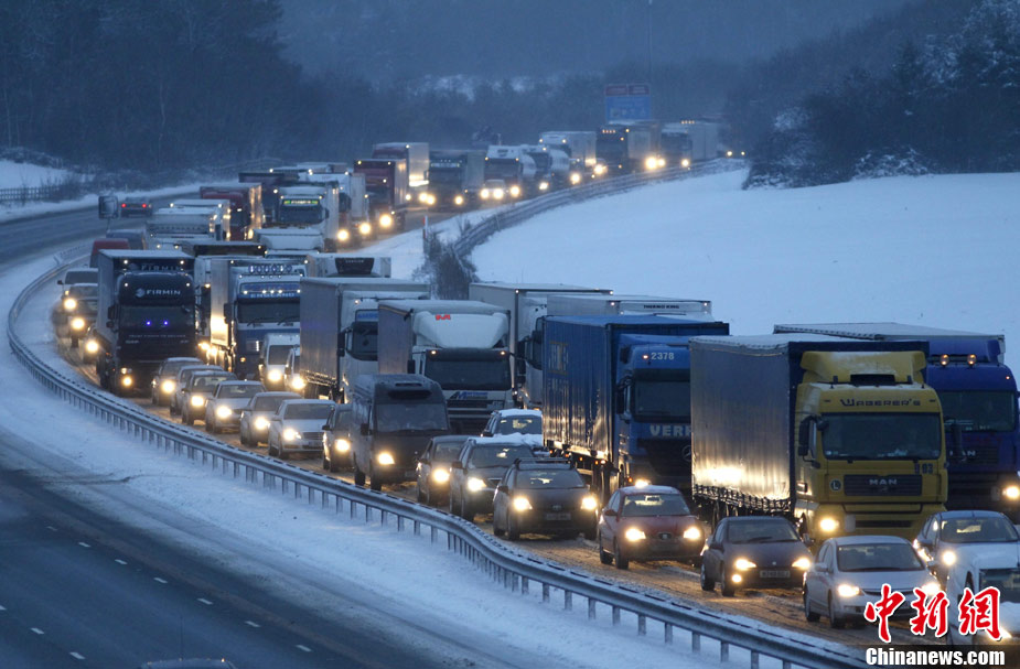 強冷空氣近日肆虐歐洲,多國遭到暴雪襲擊,目前已導致歐洲范圍內至少13人死亡,并對各國陸空交通造成嚴重影響,航班被迫取消,多條公路關閉。圖為12月1日,在英國斯托克波特,車輛在暴雪中行駛。