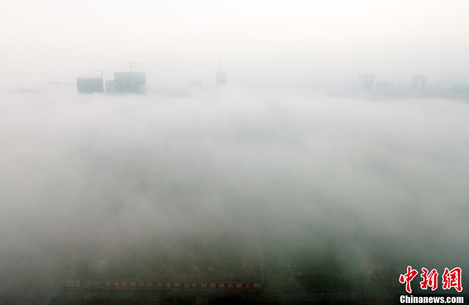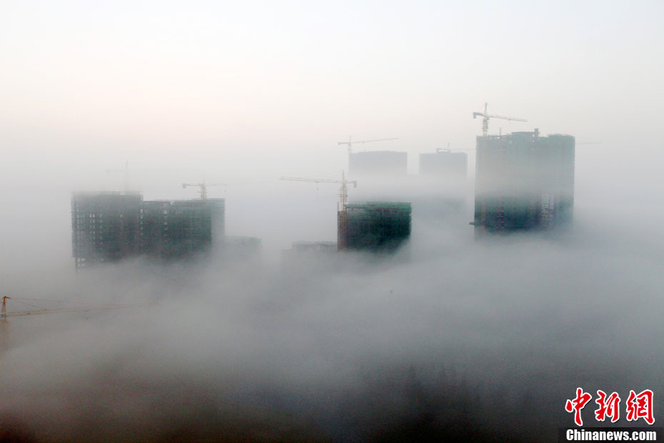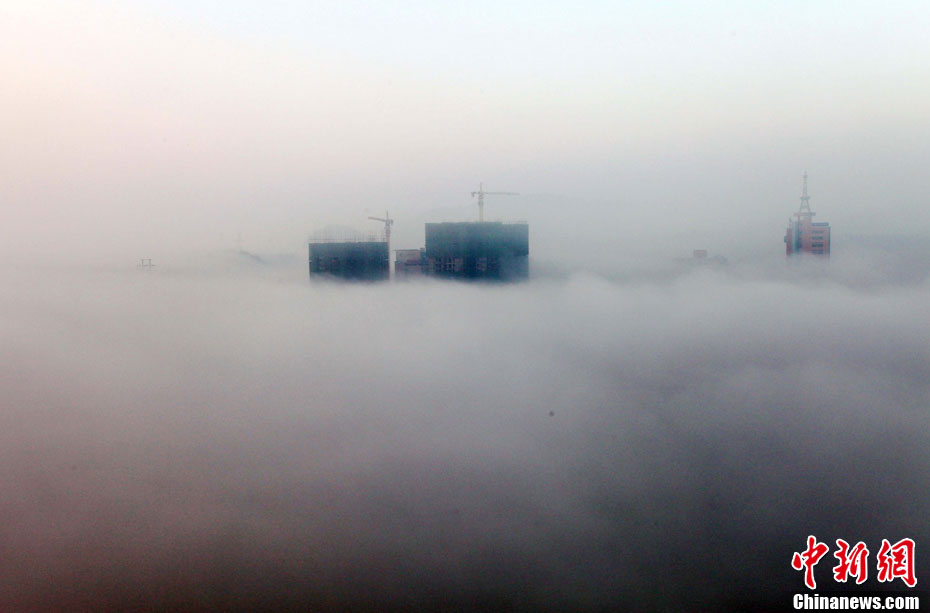 12月2日清晨,貴州省安順市出現平流霧奇觀,整個市區宛如仙境。 中新社發 盧維 攝 圖片來源:cnsphoto