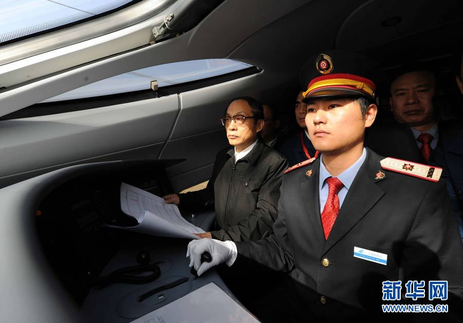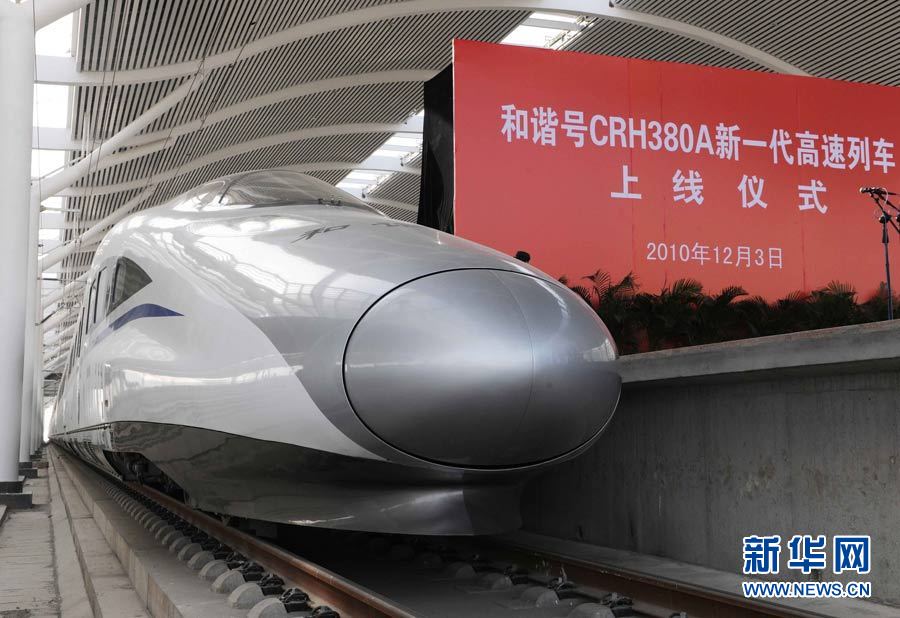 12月3日,將進(jìn)行綜合試驗的“和諧號”CRH380A新一代高速動車組停在京滬高鐵徐州東站站臺。當(dāng)日上午11時左右,中國新一代高速動車組將在京滬高鐵先導(dǎo)段(棗莊至蚌埠)展開綜合試驗,預(yù)計最高時速將大大超過此前416.6公里的紀(jì)錄。 陳樹根 攝 圖片來源:新華網(wǎng)