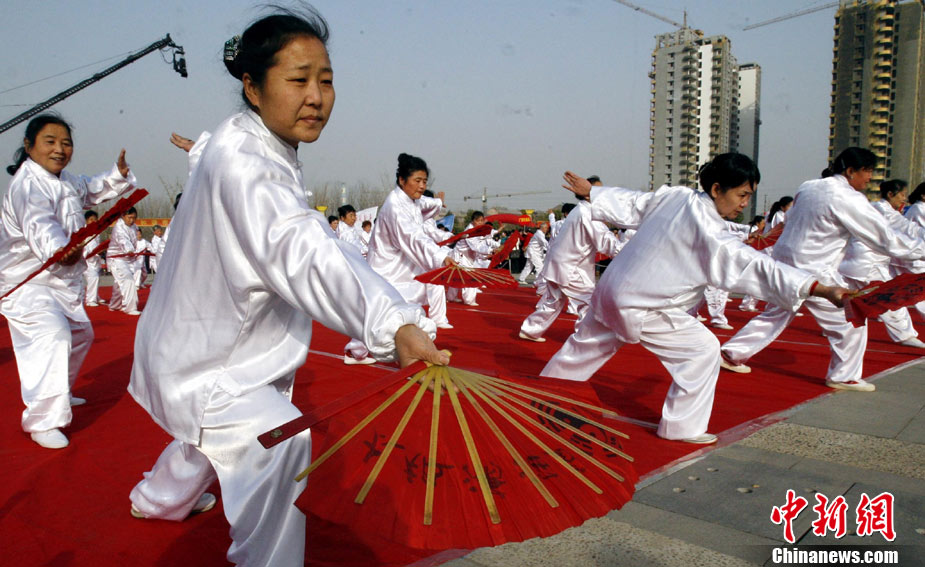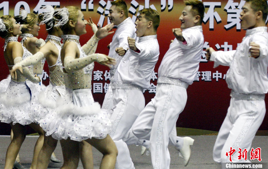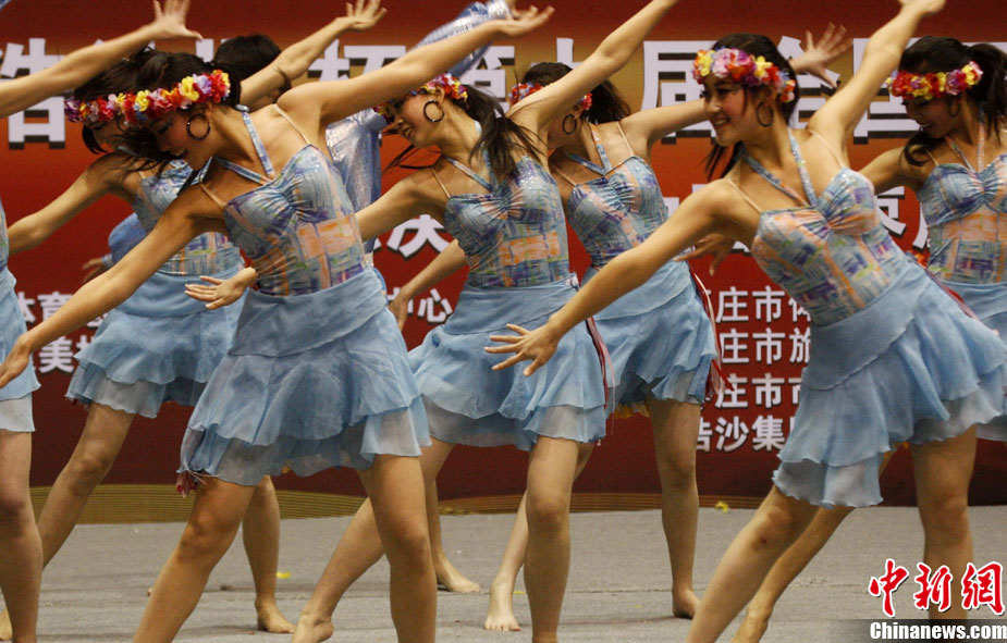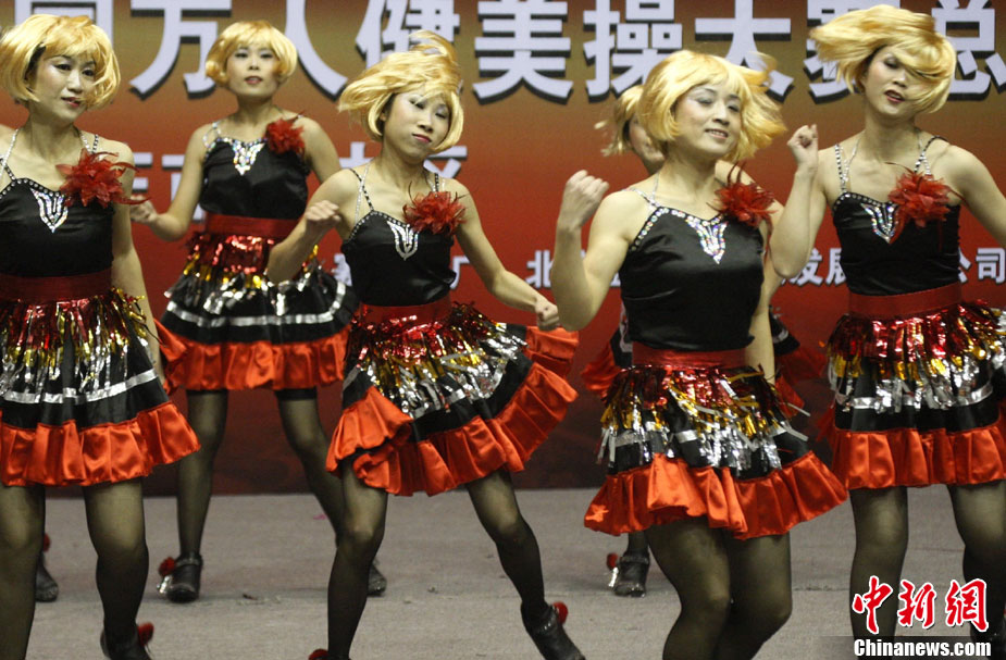 12月9日,由中國國家體育總局體操運動管理中心、中國健美操協(xié)會、浩沙國際健身管理有限公司以及山東省棗莊市市中區(qū)聯(lián)合主辦的2010年第9屆“浩沙杯”中國內(nèi)地萬人健美操大賽在山東棗莊拉開帷幕,來自中國內(nèi)地20個分賽區(qū)的1700余名選手匯聚一地,大賽包括少兒組、中學組、大專學院組、健身俱樂部組、中老年組、家庭組等共10個組別的賽事項目。圖為 “浩沙杯”中國內(nèi)地萬人健美操大賽在棗莊東湖廣場拉開帷幕。