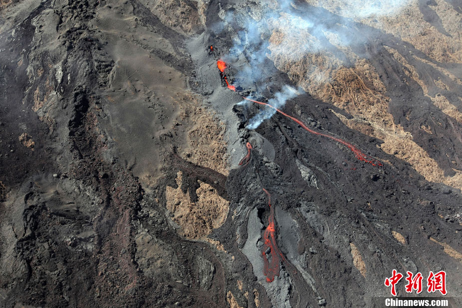 12月10日,法國留尼旺島上的弗爾乃斯火山噴發(fā)熔巖流,位于印度洋西南部的弗爾乃斯火山是世界上最活躍的活火山之一。