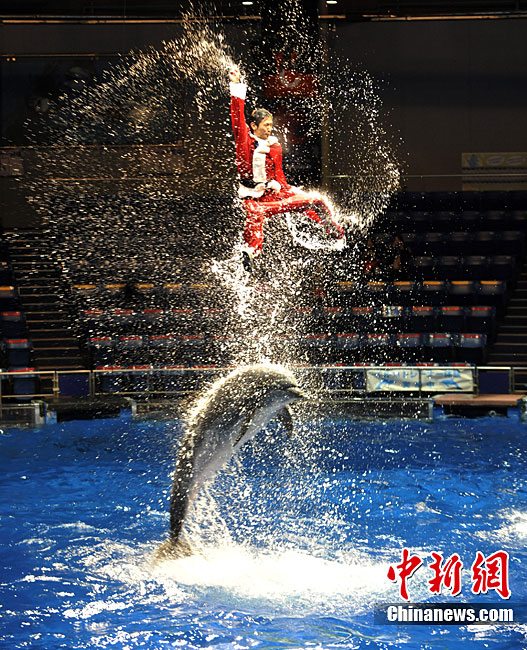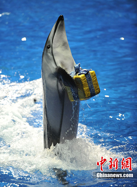當?shù)貢r間12月13日,日本東京一家水族館內的海洋動物進行了一場精彩的圣誕表演。海豹、海豚為現(xiàn)場觀眾送去了一件件圣誕禮物。
