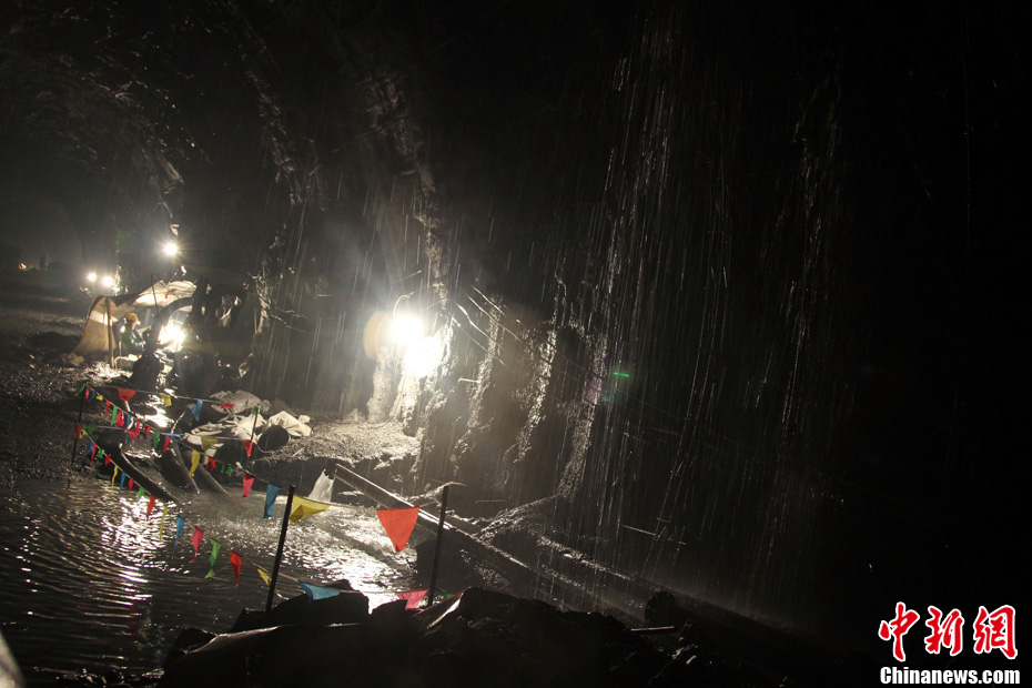 西藏墨脫公路控制性工程嘎隆拉隧道15日上午在海拔3700多米的隧道口順利貫通。墨脫人民世代被茫茫雪山所阻隔的歷史終于結(jié)束。隧道貫通后,參建者在貫通處歡呼。中新社記者 徐長(zhǎng)安 攝