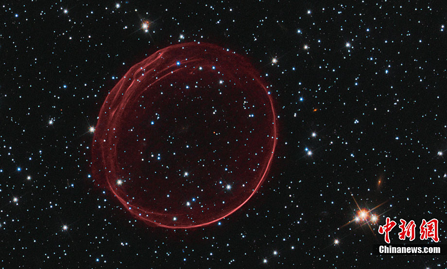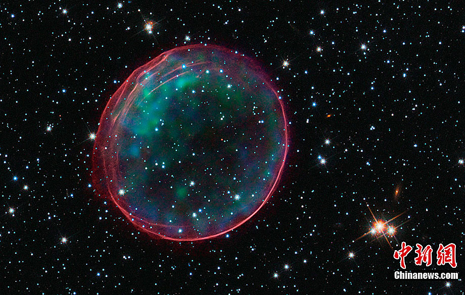 近日,美國哈勃太空望遠鏡拍攝到了美麗的星系間“圣誕大氣泡”的照片。這個“圣誕大氣泡”是由400年前發生的超新星爆炸的殘骸形成的,它像一個精致的“殼”一樣漂浮在太空中。據悉,這個“圣誕大氣泡”是我們的臨近星系——大麥哲倫星云(Large Magellanic Cloud)中的一顆超新星在爆炸時發出的沖擊波及其噴射出來的物質 ,大麥哲倫星云與地球的距離為16萬光年。科學家們將這個“圣誕大氣泡”氣圈命名為“SNR B0509-67.5”或者縮寫成“SNR 0509”。據悉,這個如氣泡狀的氣圈的直徑為23光年,并且正在以超過1100萬千米每小時的速度擴散。另外,哈勃太空望遠鏡拍攝到了“圣誕大氣泡”處于各種不同情況下的照片。