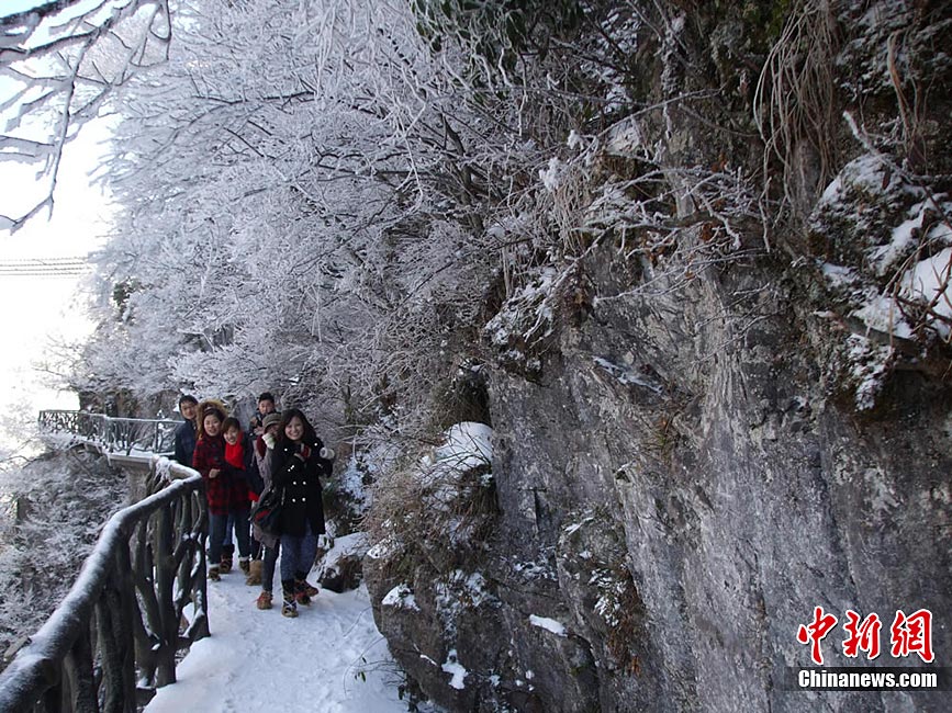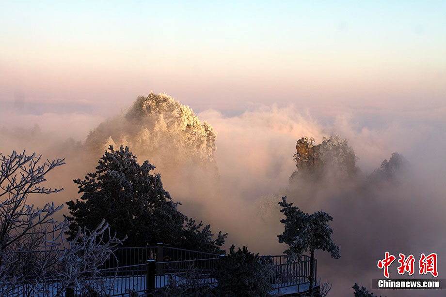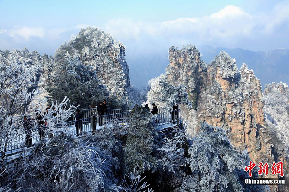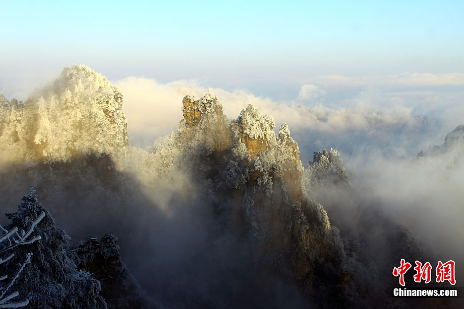 12月16日,世界自然遺產張家界雪后放晴,天子山、黃石寨等景點出現美輪美奐的云海奇觀。白雪覆蓋的石英砂巖峰林,在云蒸霞蔚之間更顯色彩斑斕,恍若仙境,令海內外游客無不陶醉其中。王傳殊 鄧道理 攝