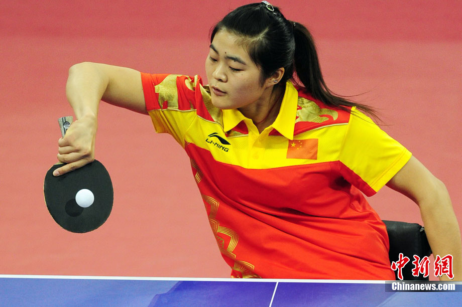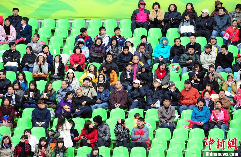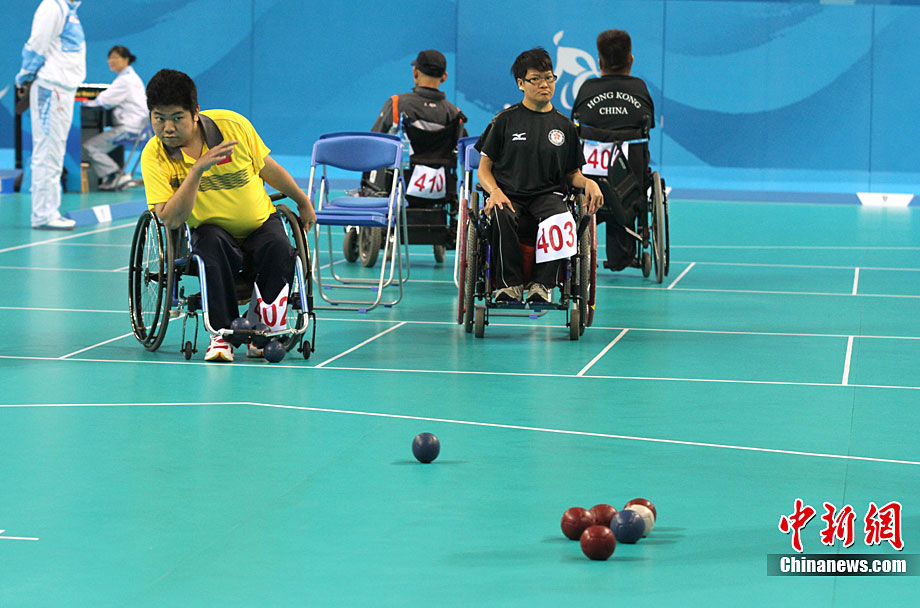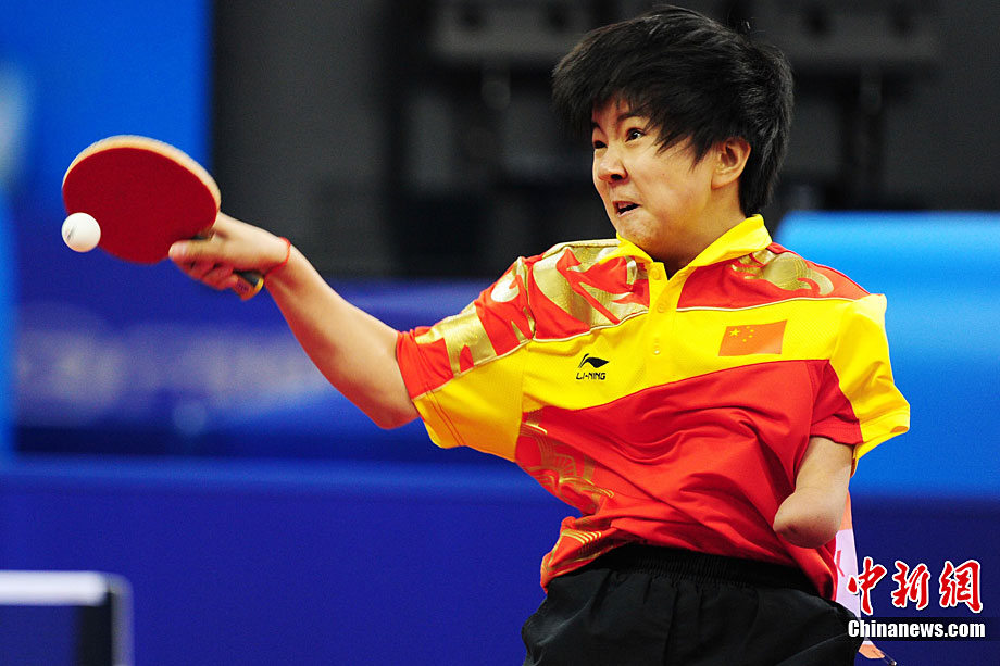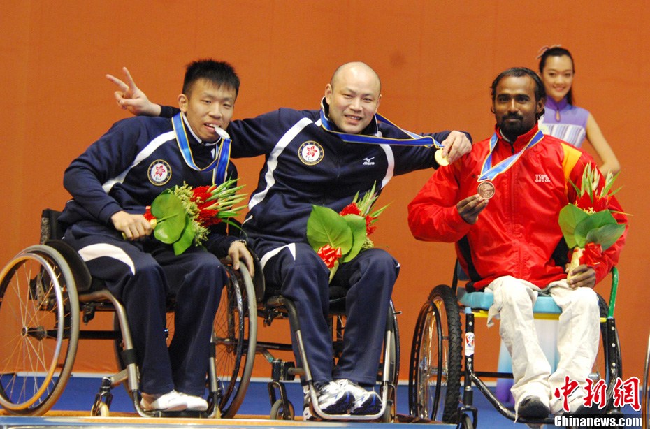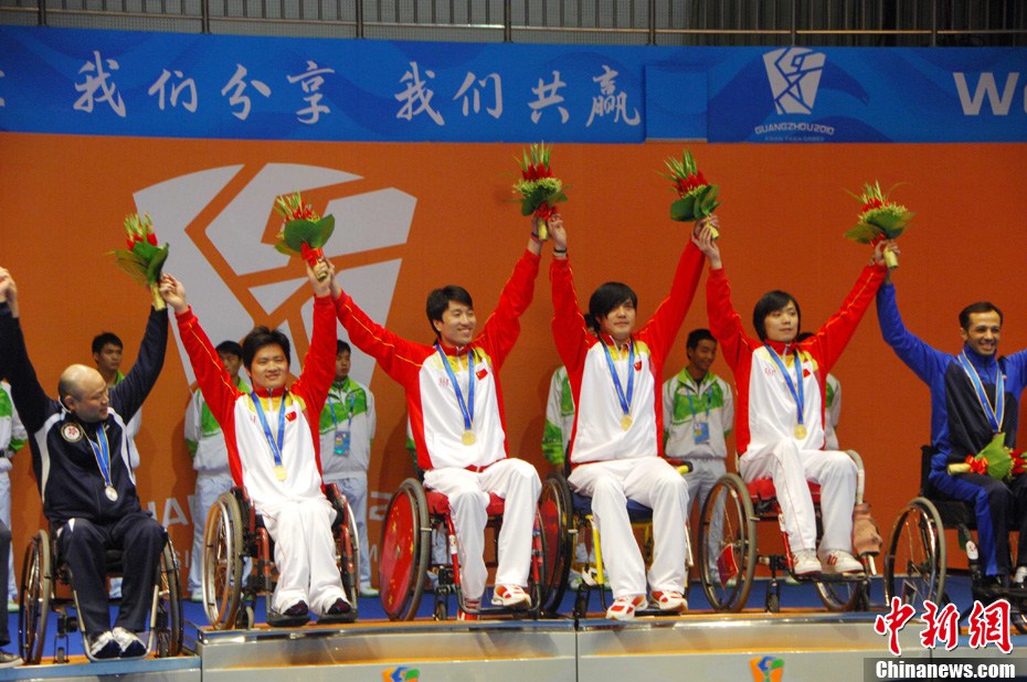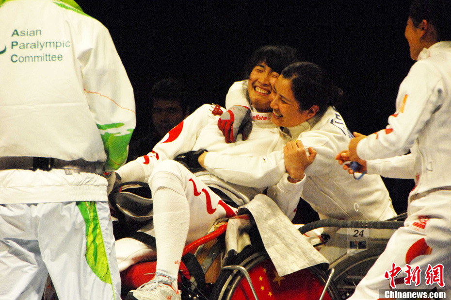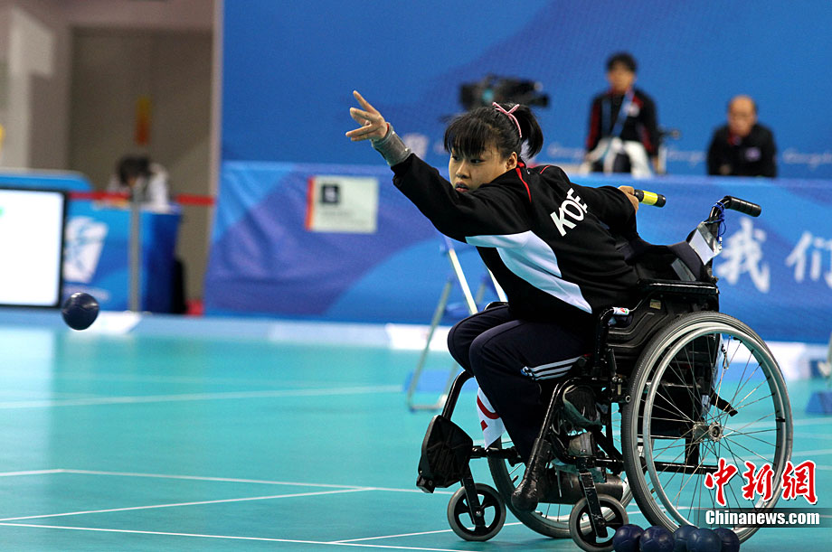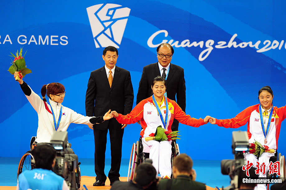 12月16日,廣州2010年亞殘運會田徑賽進入第3天,廣州遭遇寒流來襲氣溫降到最低2度,最高氣溫僅7度,亞洲選手在寒冷的氣候條件下參賽。圖為中國跳高選手李小文在比賽中。中新社記者 陳文 攝