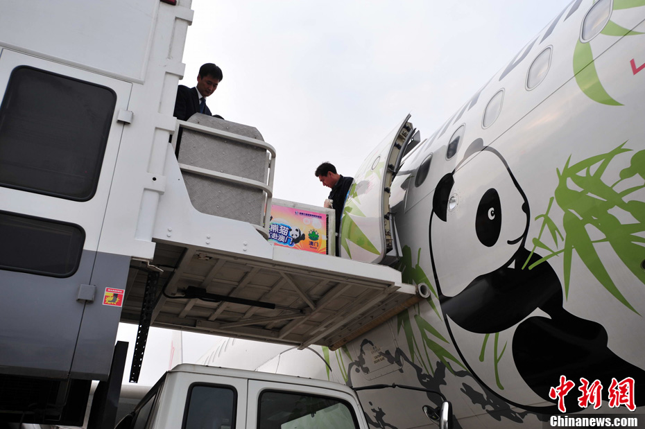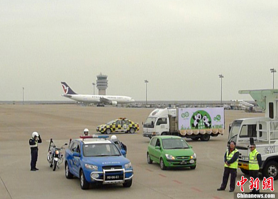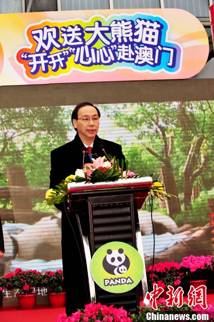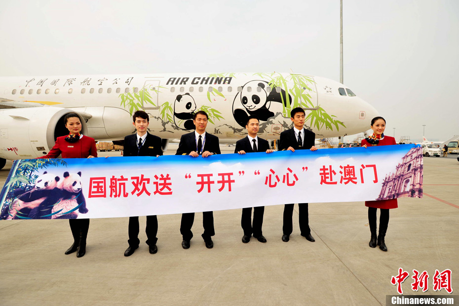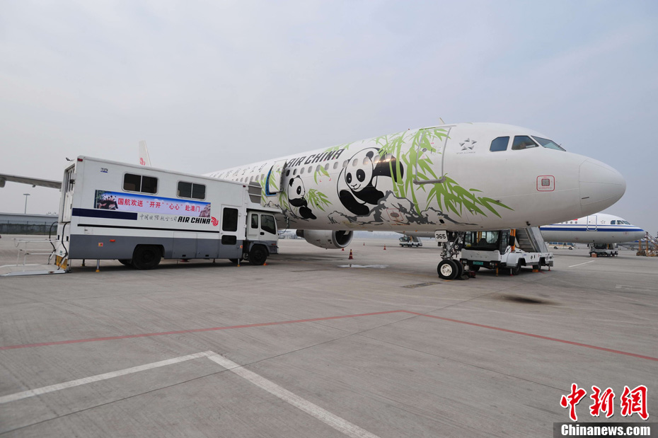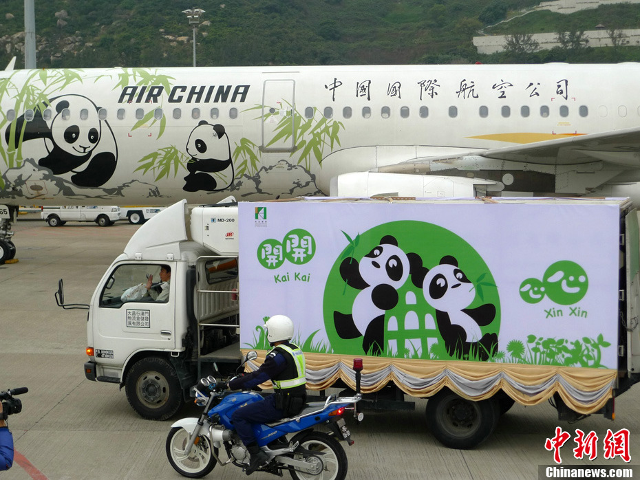 12月18日上午,中央贈(zèng)澳大熊貓歡送儀式在成都大熊貓繁育研究基地的科學(xué)探秘館廣場舉行。儀式后,工作人員將裝運(yùn)“開開”、“心心”的專用籠子搬上專車,開離成都大熊貓繁育研究基地,赴成都雙流國際機(jī)場。中新社發(fā) 安源 攝