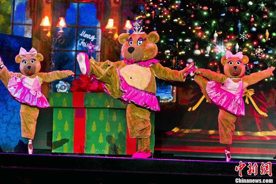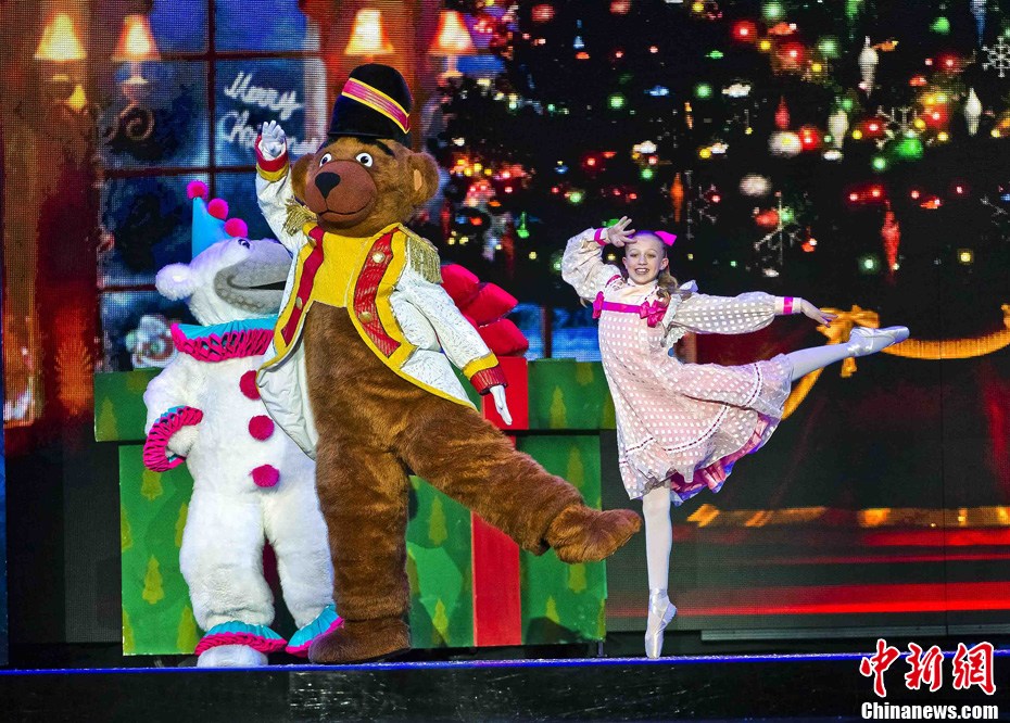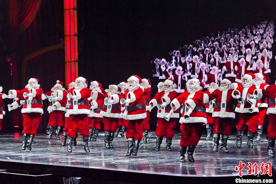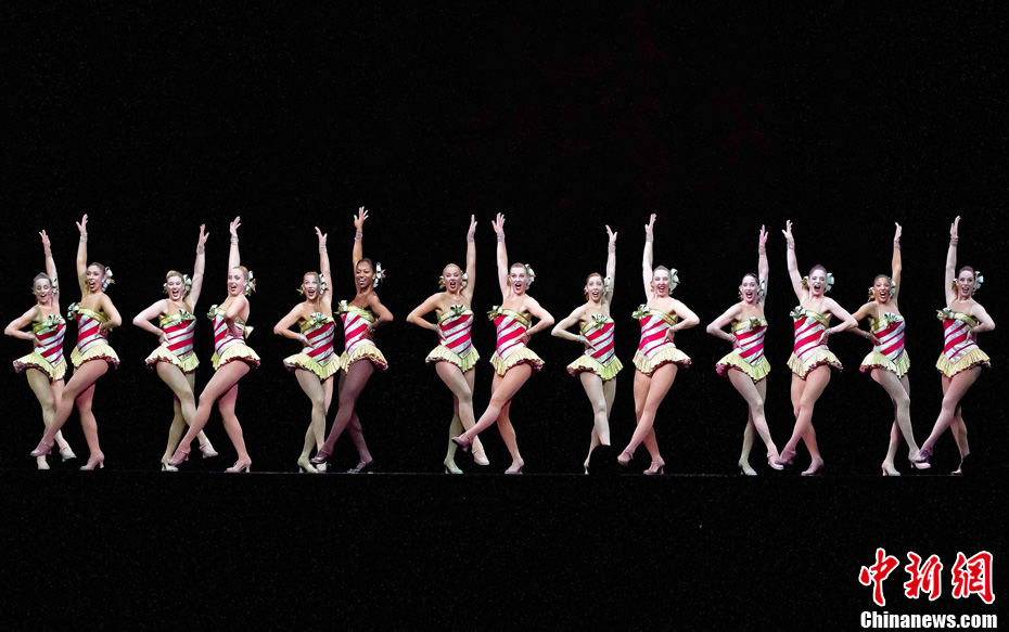當地時間12月17日晚,美國加州奧克蘭甲骨文體育館內,美國火箭女郎舞蹈團圣誕秀熱鬧登場。78年歷史的火箭女郎舞蹈團1932年在紐約第六大道的無線電城音樂廳首演,以舞蹈演員整齊劃一的踢腿和充滿圣誕氣氛的布景成為美國傳統節日的經典劇目。演員們在每場演出中單是踢腿到頭頂的動作就達300下。中新社發 陳鋼 攝