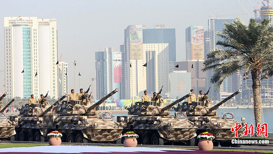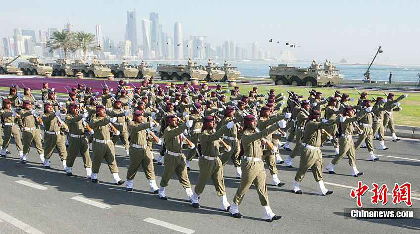 當地時間12月18日,卡塔爾首都多哈的海邊大道上舉行了盛大的國慶日閱兵式。