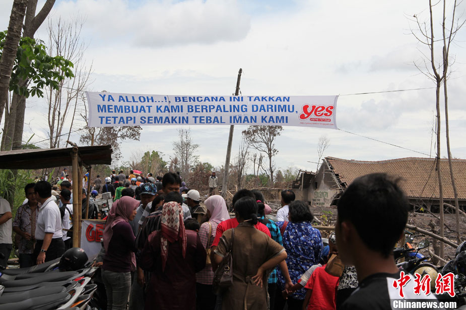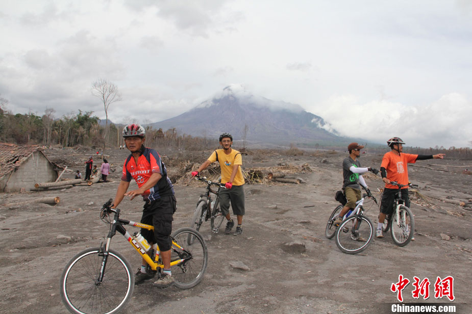 今年10月下旬,位于印尼日惹市的默拉皮火山在沉睡百年后,再次大規模數次噴發,并造成300多人罹難、成千上萬人受傷,數十萬人撤離家園。默拉皮火山11月份停止噴發后,來自印尼各地的民眾紛紛來此旅游觀光。火山腳下一個叫GUNGAND被火山巖漿埋沒的村莊,每天來旅游的人數逾5000人。圖為當地民眾在拍照留念。中新社發 顧時宏 攝