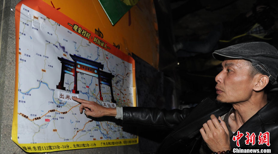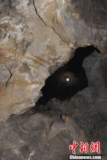 12月22日凌晨,廣東肇慶七星巖“出米洞”景區冬至日出現“頭上有明月,腳下無暗影”月光垂照山洞的奇趣天文地理景象,吸引了北京、廣州、肇慶三地天文地理氣象科研人員。中國科學院國家天文臺研究員張濟同稱,月亮垂照出米洞奇觀必須符合滿月時分,冬至日,月亮必須到達北緯23°08′上空三個條件。他說,下一次出米洞看月光垂照要等19年,本世紀100年僅可能看到6次這樣的奇觀。圖為冬至日凌晨的端州出米洞上空的月亮。