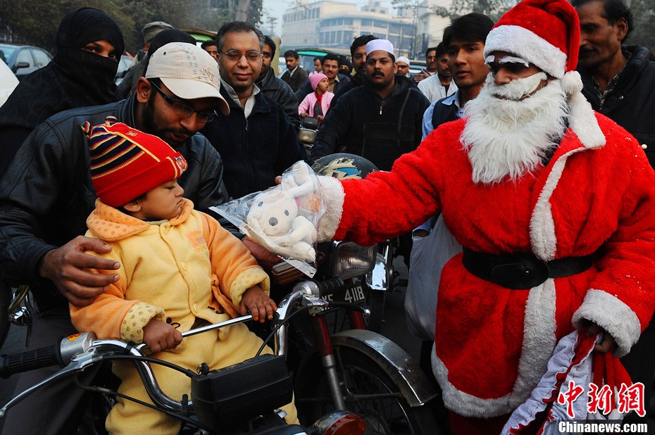 當地時間12月24日,伊拉克庫爾德人聚集地圣誕老人為孩子們送去歡樂。