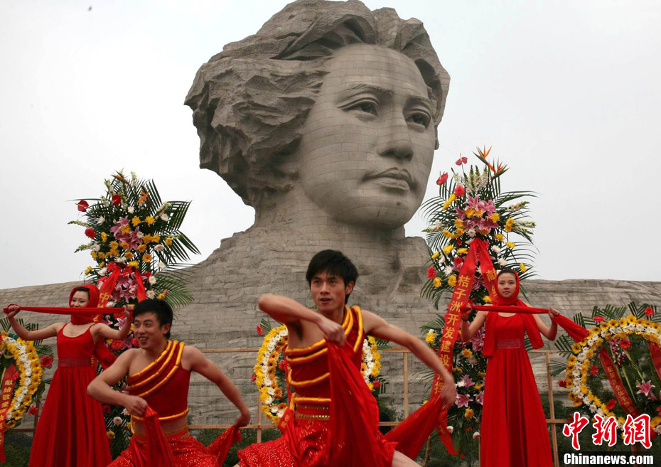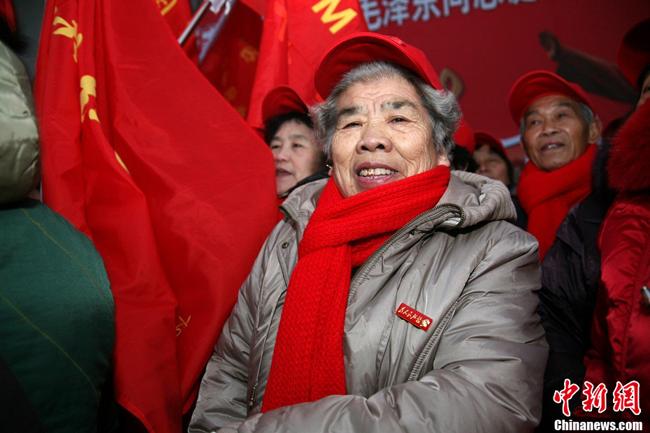12月26日,河南鄭州,民眾聚集在紫荊山廣場毛澤東塑像前向毛澤東同志塑像敬獻花籃。當日是毛澤東誕辰117周年,北京、 甘肅、山西、 山東、河南等中國各地舉行紀念毛主席誕辰活動,深切緬懷這位世紀偉人。中新社記者 王中舉 攝