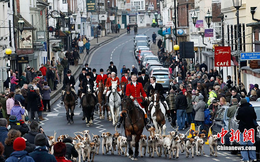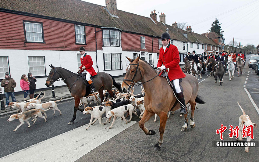 當?shù)貢r間12月27日,英格蘭東南部肯特郡舉行了盛大的節(jié)禮日狩獵活動開幕式。眾多英國傳統(tǒng)狩獵愛好者攜帶獵犬參加了這一活動。