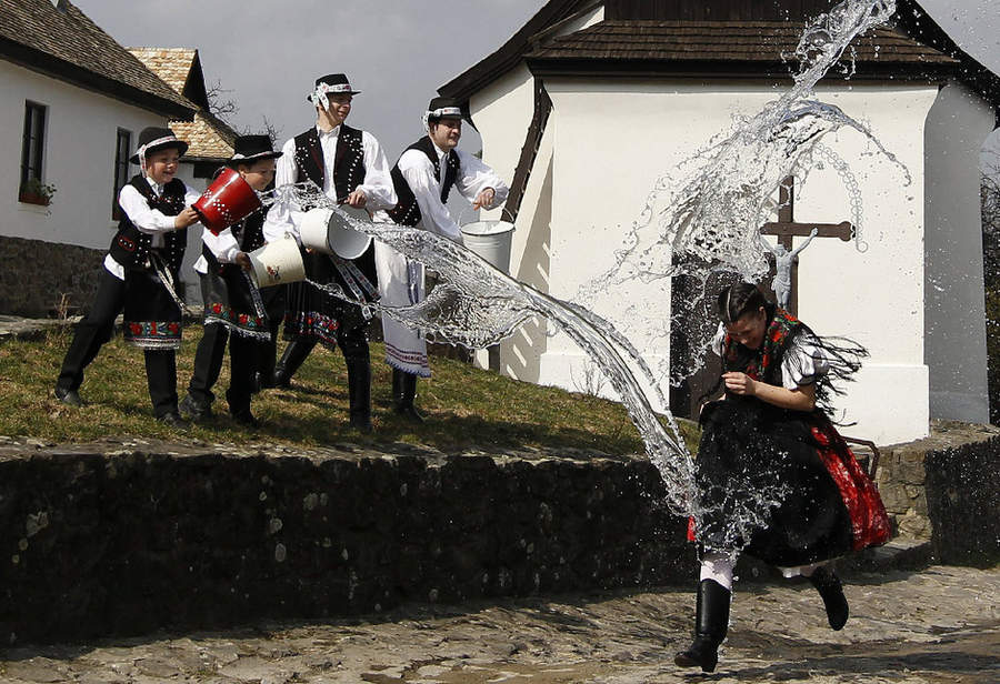 2010年3月23日,在愛爾蘭北部的德里布,一名女子正在向外倒垃圾。旁邊的壁畫上,一名英國士兵正使用大錘子擊倒一棟房子的大門。