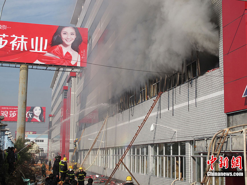 12月28日上午10時(shí)50分許,浙江省義烏市知名企業(yè)浪莎集團(tuán)倉(cāng)庫(kù)樓發(fā)生火災(zāi)。因火勢(shì)較大,金華消防總共出動(dòng)了三十幾輛消防車(chē)參與救火,倉(cāng)庫(kù)內(nèi)9名工作人員均已安全疏散,確定無(wú)人員傷亡情況。張茵 攝