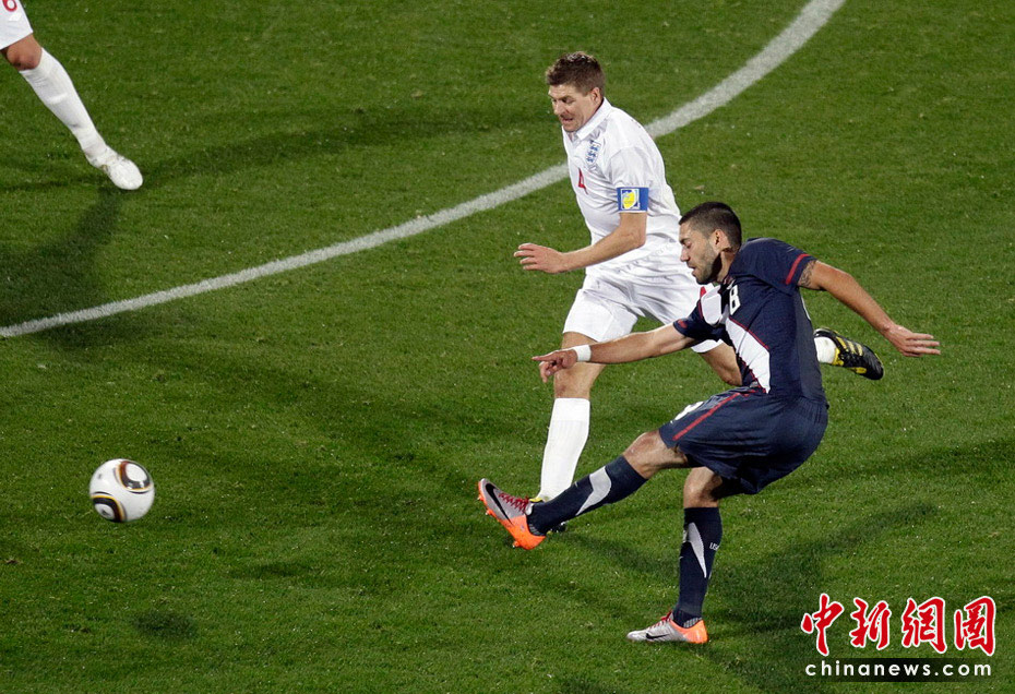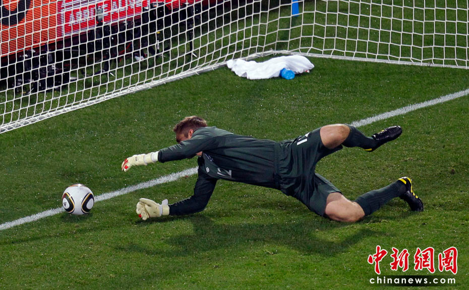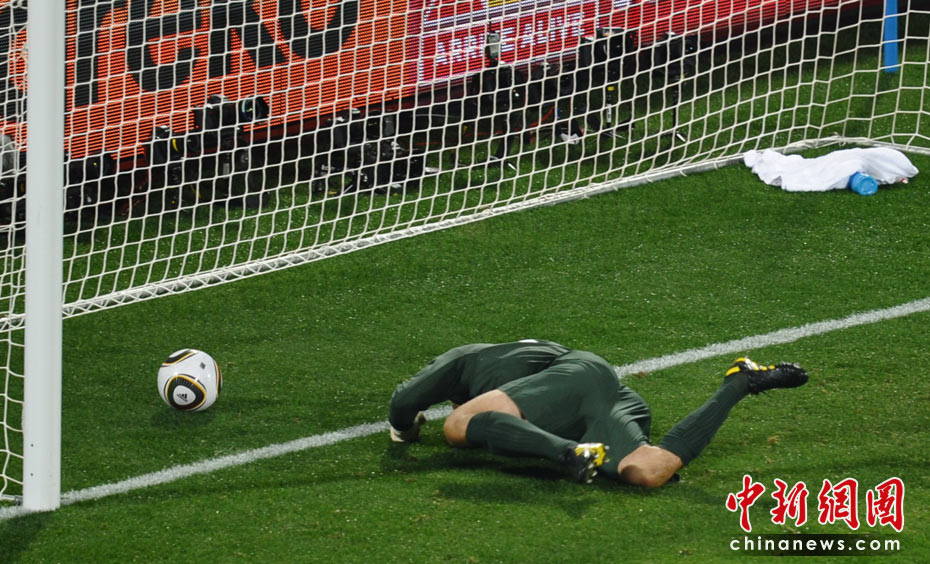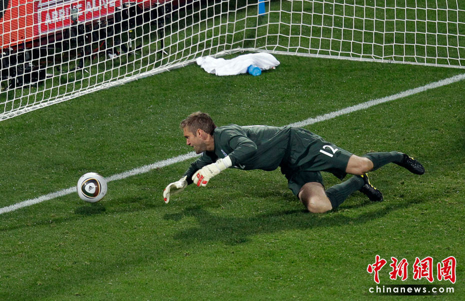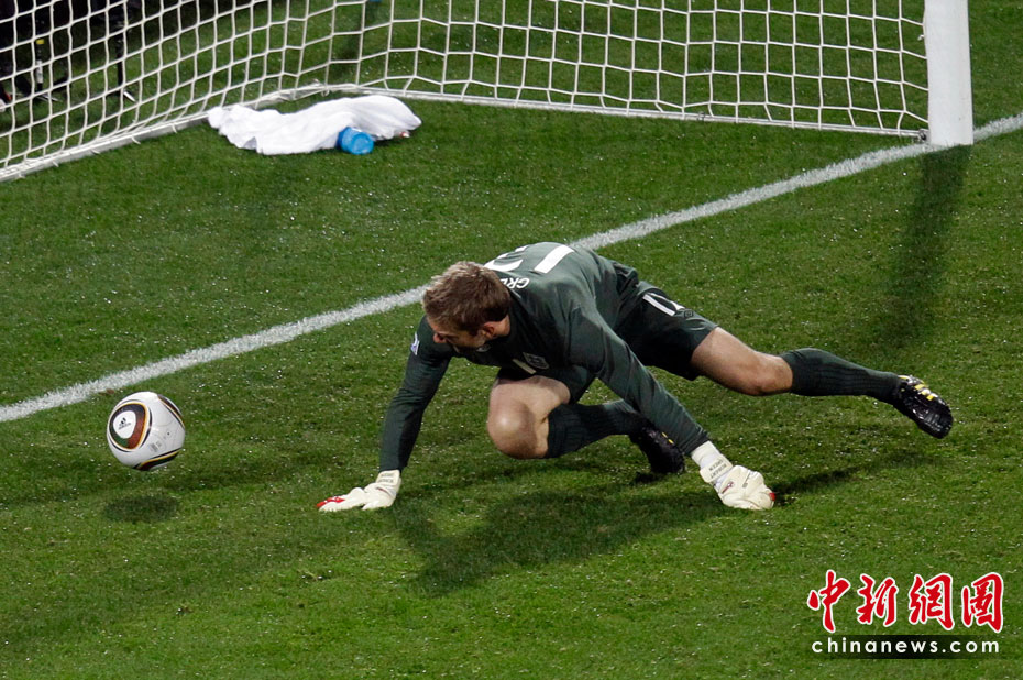 在13日凌晨2:30開(kāi)始的一場(chǎng)南非世界杯小組賽中,英格蘭隊(duì)迎來(lái)了首個(gè)對(duì)手美國(guó)隊(duì),雖然蘭帕德在比賽開(kāi)始后先拔頭籌,但上半場(chǎng)臨近結(jié)束前守門(mén)員格林的一次超低級(jí)失誤斷送好局,最終雙方1-1握手言和。 圖為格林失誤的瞬間。