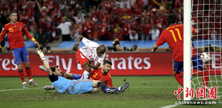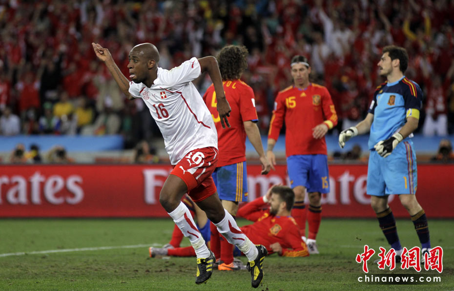北京時間6月16日晚22點(diǎn),南非世界杯H組比賽拉開戰(zhàn)幕。奪標(biāo)大熱門西班牙隊正式亮相賽場,在德班球場迎戰(zhàn)“軍刀”瑞士。瑞士隊?wèi){借下半場比賽開始后不久費(fèi)爾南德斯的反擊得分,以1-0擊敗西班牙,爆出本屆世界杯第一個大冷門。