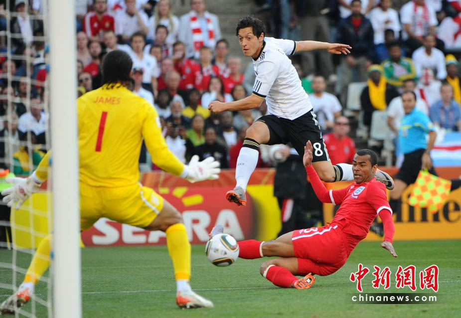 27日晚,南非世界杯1/8決賽上演了一場焦點對決。德國隊在布隆方丹的自由州體育場迎戰宿敵英格蘭隊。在上半場比賽進行到底38分鐘時,裁判出現了一次有可能改變比賽進程的致命誤判: 蘭帕德一腳遠射明顯已經破門,但被主裁判無視。