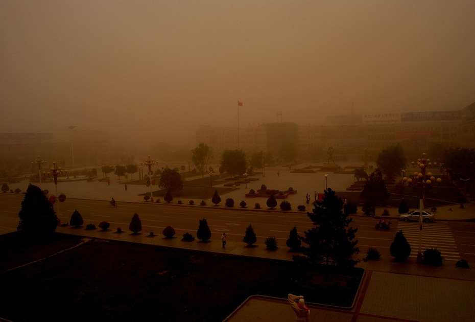 6月27日,甘肅民勤城區遭到沙塵襲擊。當日下午4時左右,甘肅省武威市民勤縣又遭沙塵暴襲擊,黃黑的沙塵迅速籠罩整個縣城,能見度大幅降低。今年4月24日甘肅民勤曾遭特大沙塵暴襲擊。 圖片來源:新華網 李軍 攝