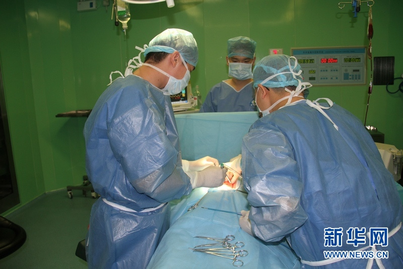 醫(yī)護(hù)人員對(duì)“傷員”進(jìn)行“手術(shù)”治療。王經(jīng)國(guó) 攝 圖片來(lái)源:新華網(wǎng)