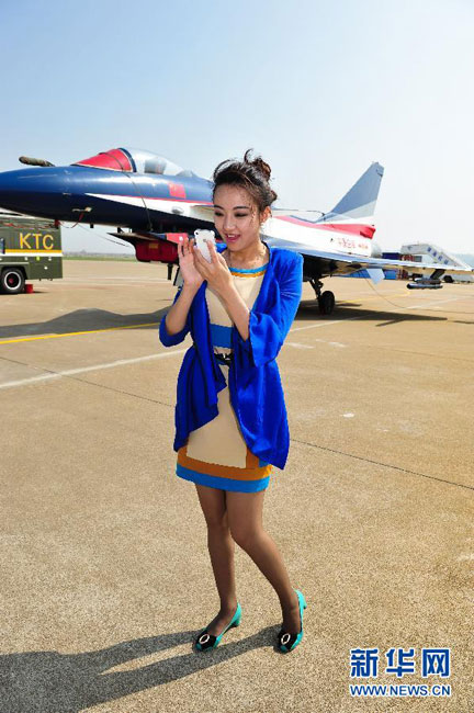 11月13日,一名女觀眾參觀殲10戰(zhàn)機(jī)后查看用手機(jī)拍攝的照片。當(dāng)日,第九屆中國國際航空航天博覽會(huì)在珠海開幕,除了豐富多樣的飛機(jī)展示,各種職業(yè)女性也成了一道獨(dú)特的風(fēng)景線。 新華社記者楊光攝 圖片來源:新華網(wǎng)