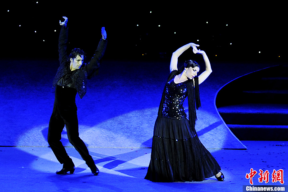 6月23日晚間,為期9天的第四屆中國(guó)成都國(guó)際非物質(zhì)文化遺產(chǎn)節(jié)在成都閉幕。以表彰保護(hù)、發(fā)揚(yáng)、傳承非物質(zhì)文化遺產(chǎn)先進(jìn)個(gè)人、集體為目的的“太陽(yáng)神鳥”獎(jiǎng)項(xiàng)也同時(shí)舉行了頒獎(jiǎng)儀式。閉幕式上,來自泰國(guó)、西班牙、剛果(金)等國(guó)的表演者以及中國(guó)四川、內(nèi)蒙古等地的藝術(shù)家,呈現(xiàn)了一場(chǎng)名為“文明的盛典”的藝術(shù)大餐。圖為閉幕式上的文藝演出。安源 攝