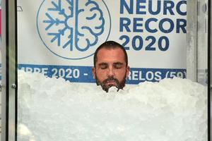 男子站在冰堆里數小時