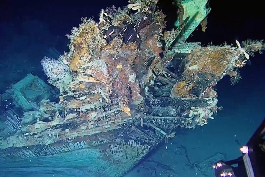 當地時間2022年6月7日,埃及沙姆沙伊赫,潛水員潛入紅海,在藍薊花號沉船殘骸中進行探險。藍薊花(SS Thistlegorm)號是二戰期間被德國擊沉的一艘英國軍需運輸船。作為世界上最著名的沉船之一,其保存非常完整?,F在,這艘沉船所在的海域已經成為失事船只探險者的夢想地之一。 圖片來源:Sipaphoto版權作品 禁止轉載