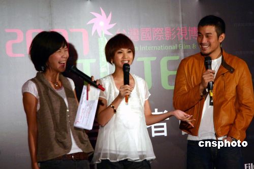 臺灣影視博覽會將于下月十日開幕,屆時將逐一舉行“金馬獎”頒獎、“數位短片競賽”等多項活動。據悉,大陸知名導演李少紅、胡雪樺等一百二十余名影視界人士將參加為期一個月的此次博覽會。擔綱形象大使的臺灣影星楊丞琳(左二)、張孝全(左三)為影視博覽會拍攝主題宣傳片“一拍即合”。圖為10月31日,他們在臺北記者會上亮相。
