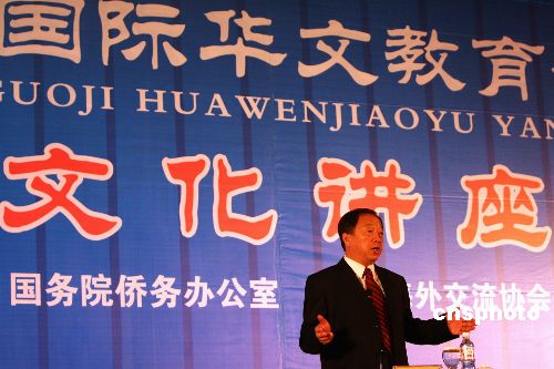 圖:孫立群在國際華文教育研討會(huì)文化講座演講