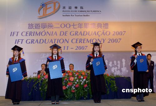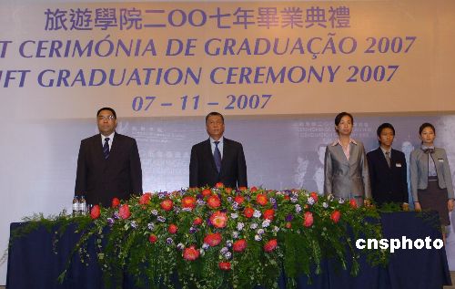 十一月七日,澳門特首何厚鏵、社會文化司司長崔世安在旅游塔主禮澳門旅游學院2007年畢業典禮。中新社發 史利 攝